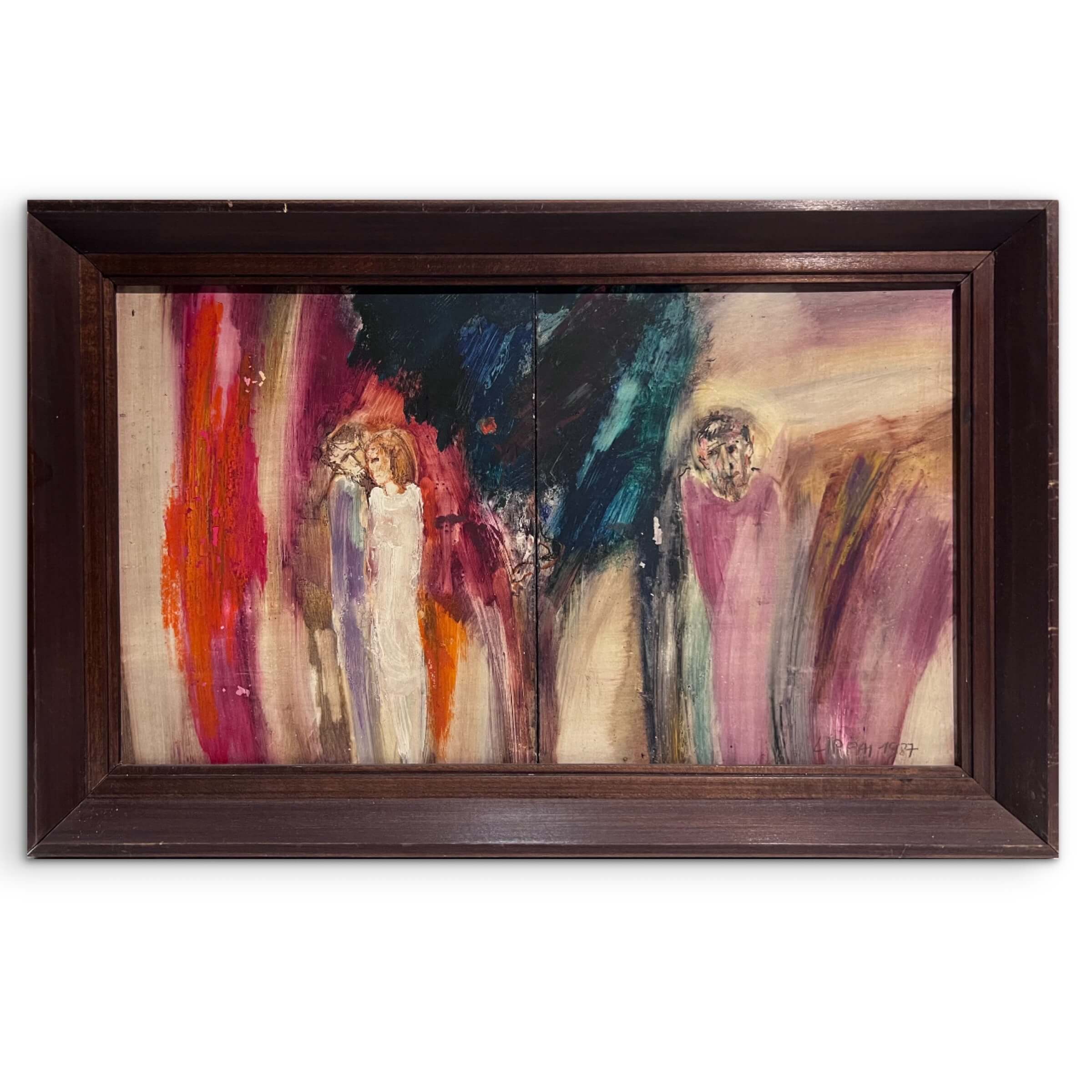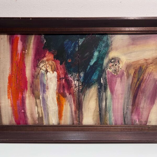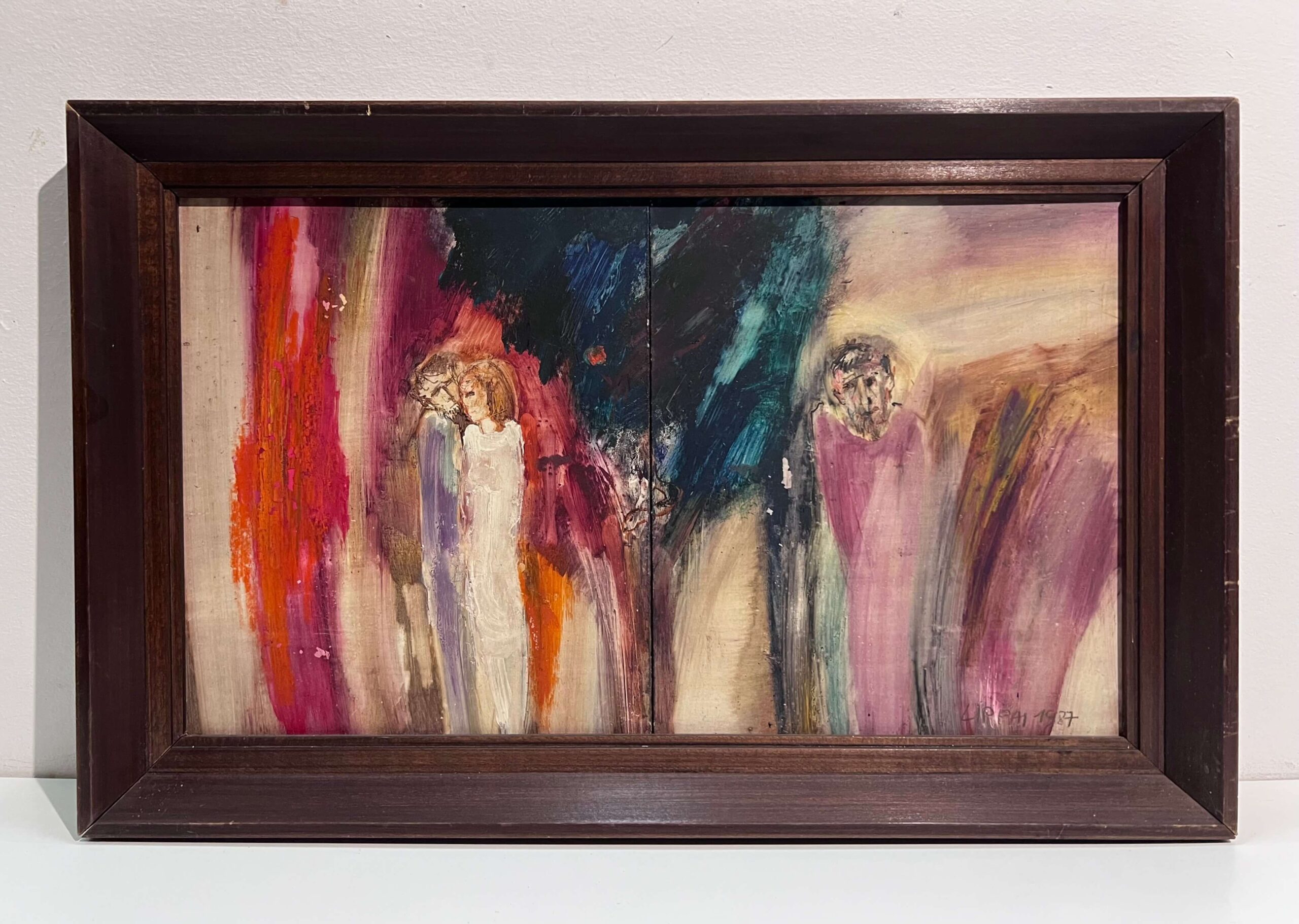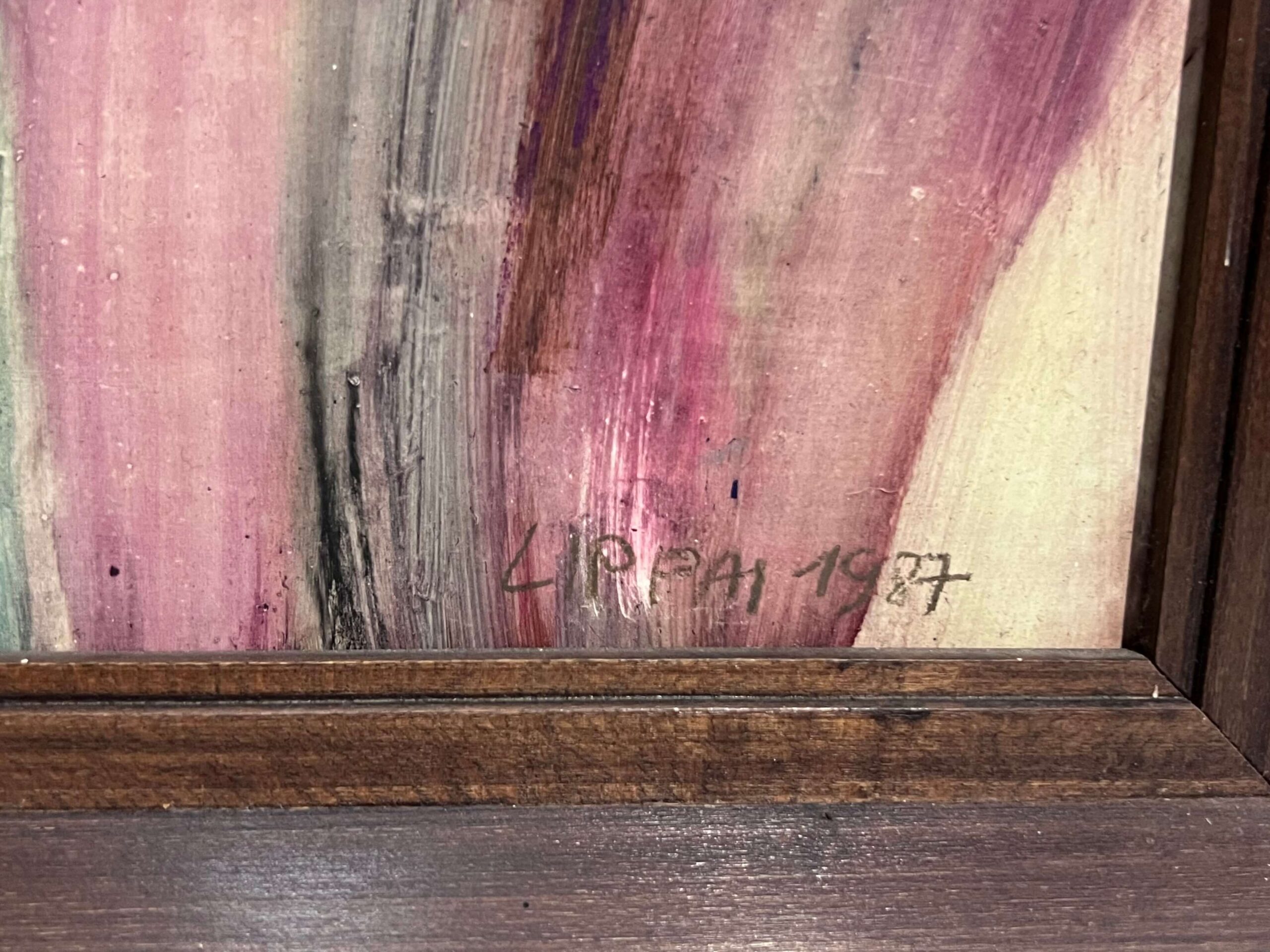 Művészien elkészített, különleges, 2 képből álló alkotás Lippai Tamás (1946-1990) fiatalon elhunyt festőművésztől 1987-ből keretezve, azonnal falra akasztható állapotban.