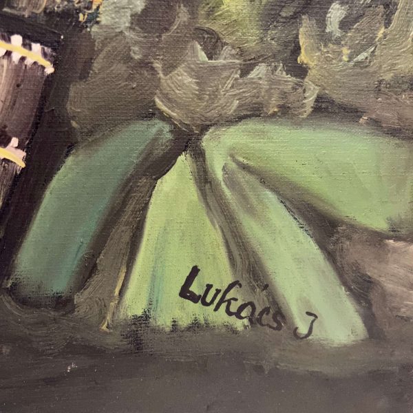 Hangulatos, szépen megfestett életkép ábrázolás, olaj-vászon alkotás Lukács J. szignóval ellátva a becsült 60-70-es évekből. A művész még beazonosítás alatt van. Szép keretezést követően otthona dísze lehet ez a gyűjtői darab!