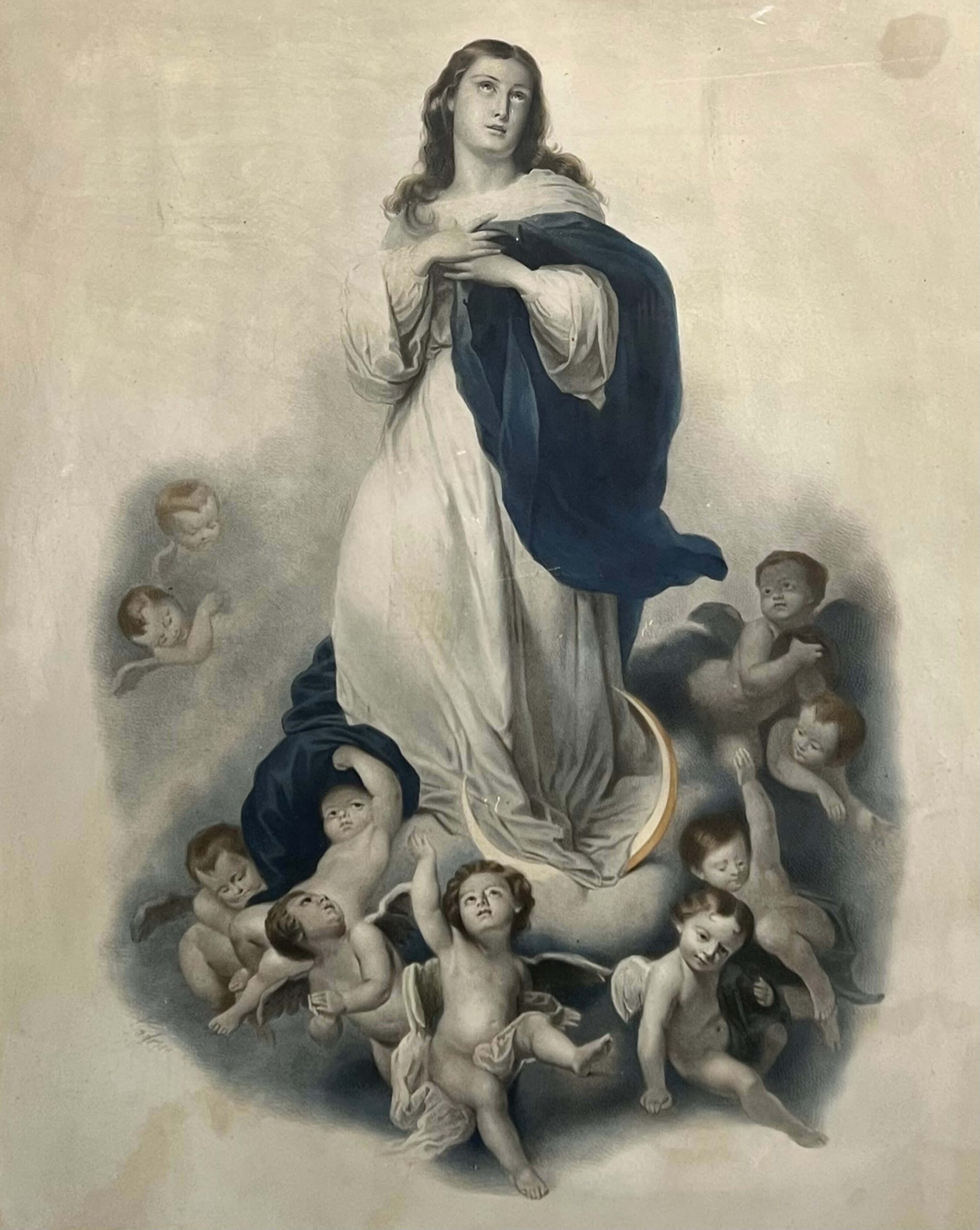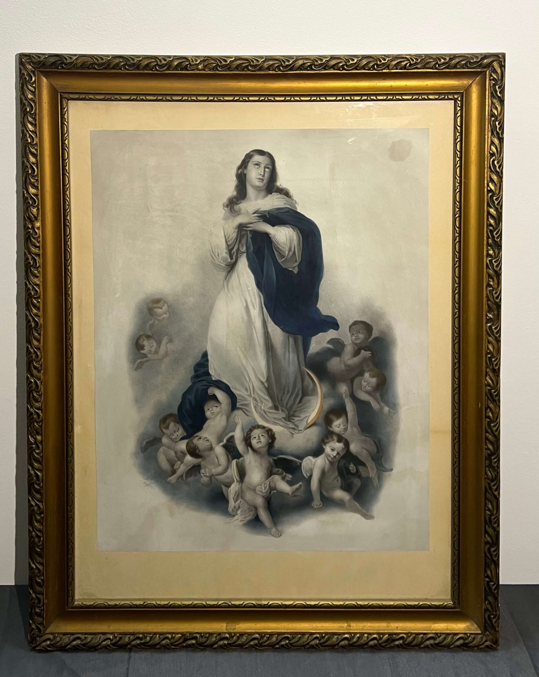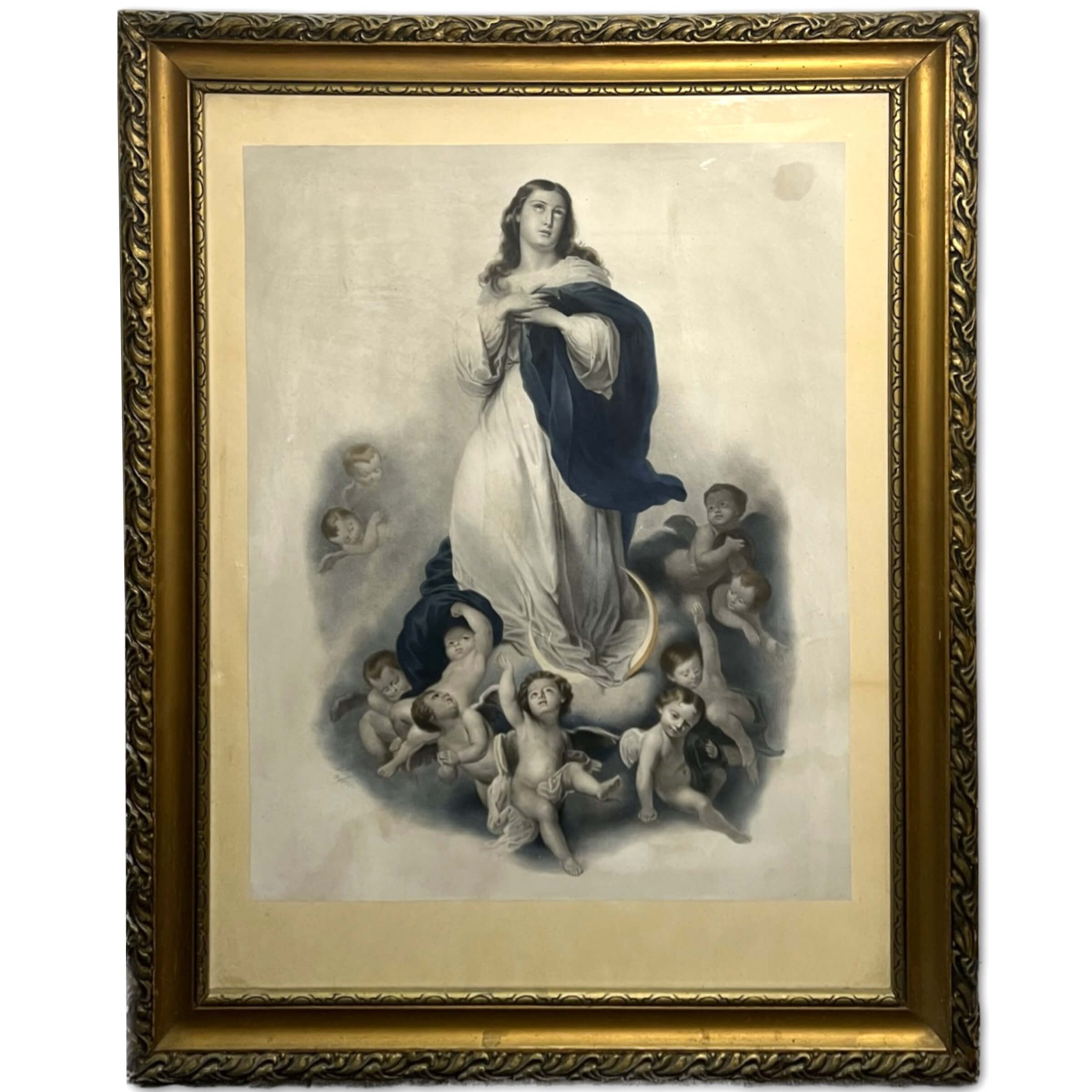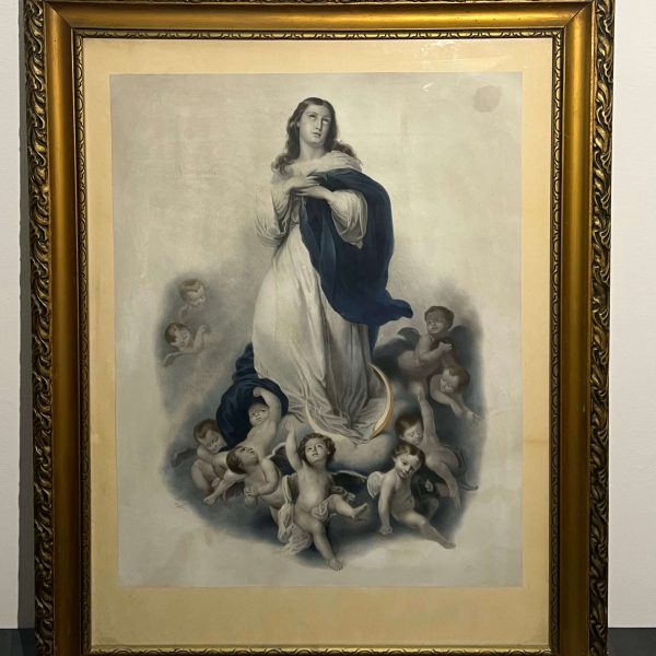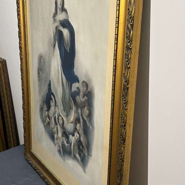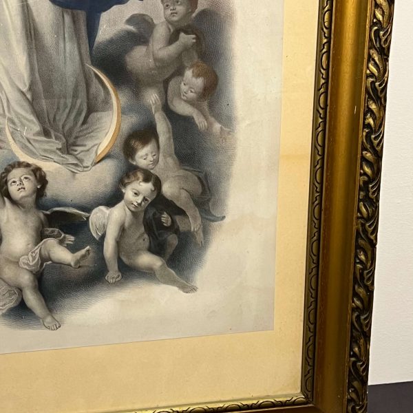 Szép, vallási jelenetet ábrázoló régi nyomat gyönyörű, antik keretben (üvegezett), azonnal falra akasztható állapotban!