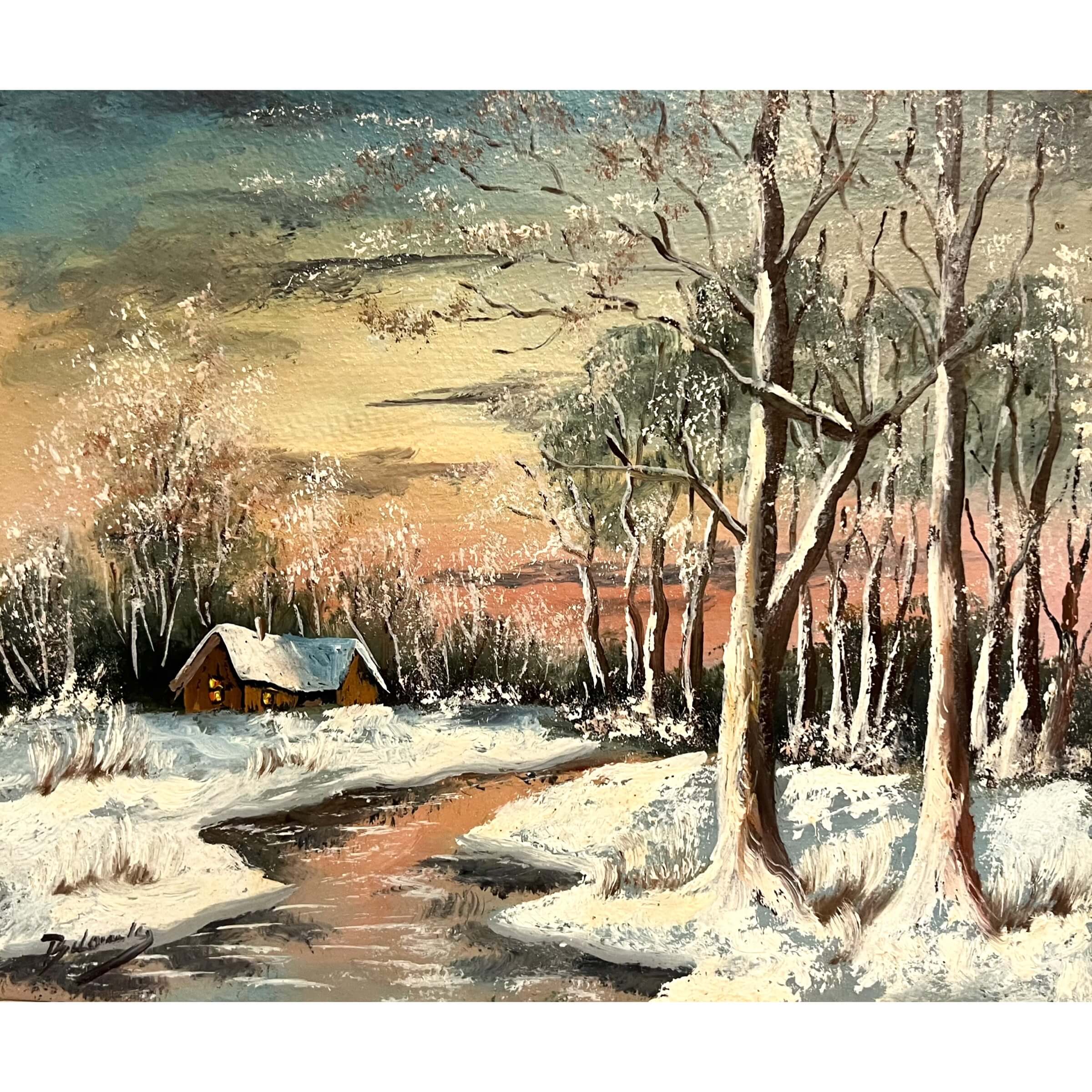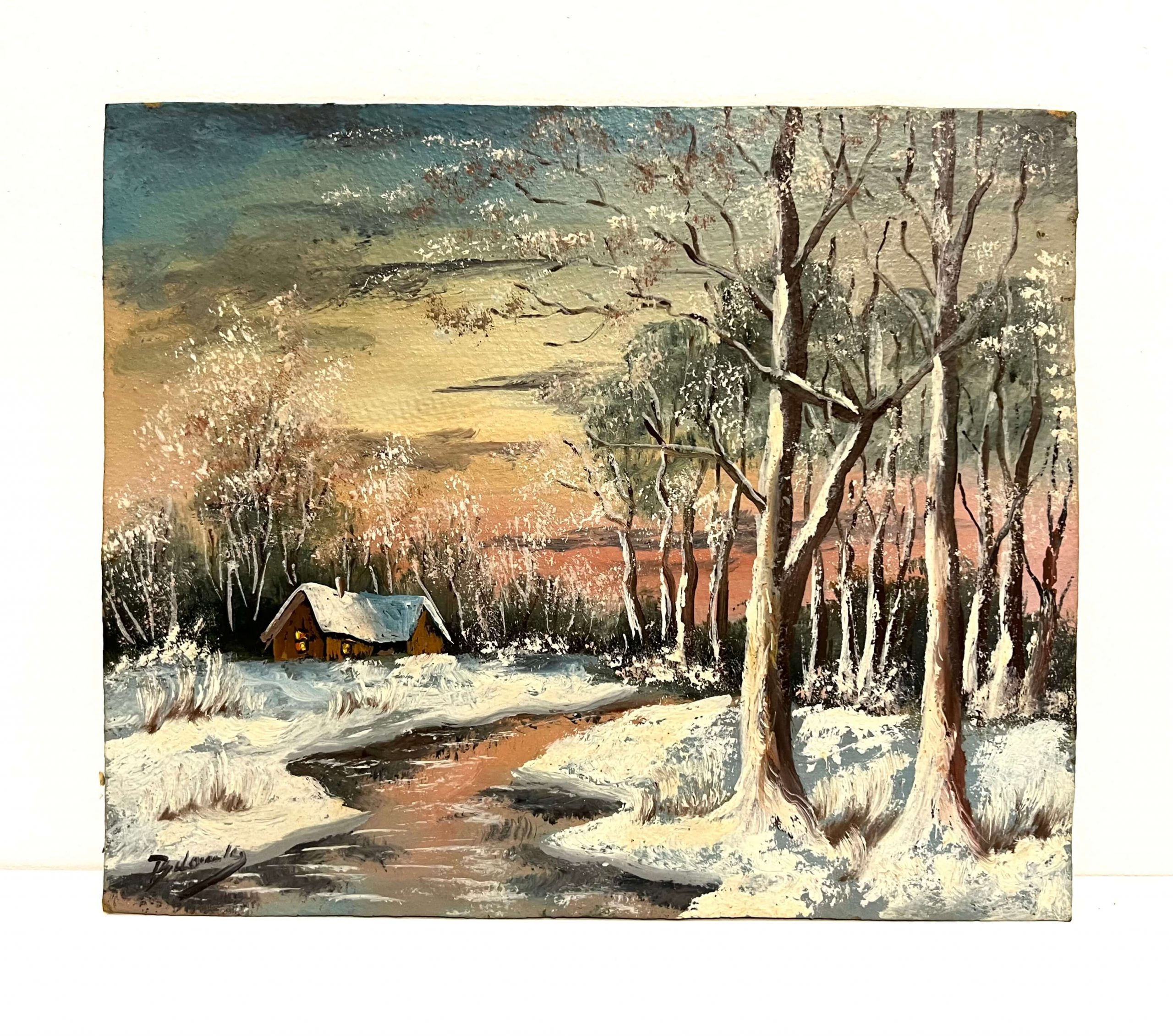 Szépen megfestett téli tájkép ábrázolás, amely csak egy hozzáillő keretezésre és egy gyűjtőre vár! A művész beazonosítása folyamatban van!