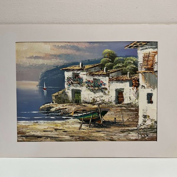 Extra kvalitásos olajfestmény, mediterrán tengerparti jelenet ábrázolás a becsült 1980-as évekből, külföldi művésztől. A művész beazonosítása folyamatban van!