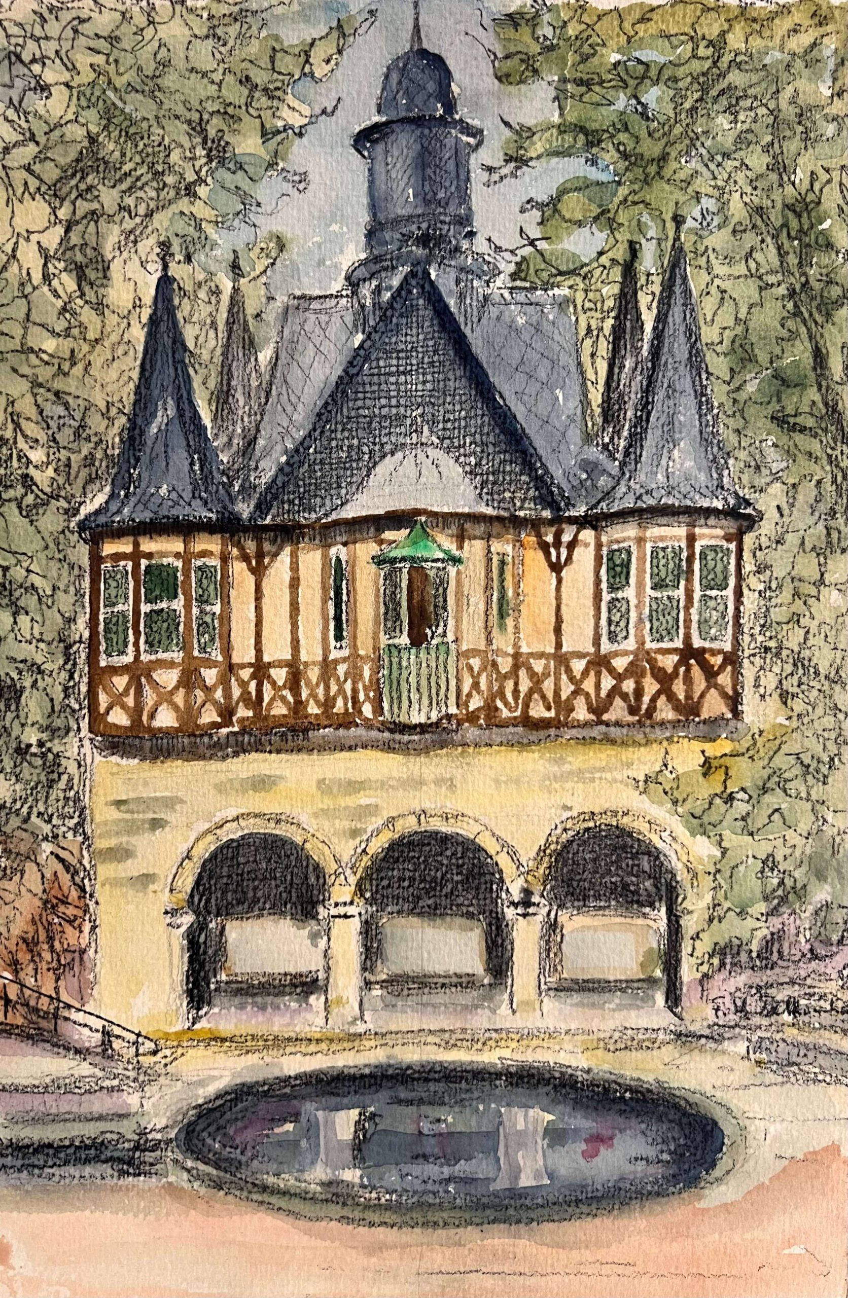 Nagyon szépen elkészített óvárosrész ábrázolás Nyugat-Európából, amely csak egy hozzáillő keretezésre és egy műértő gyűjtőre-befektetőre vár! A művész beazonosítása folyamatban van!