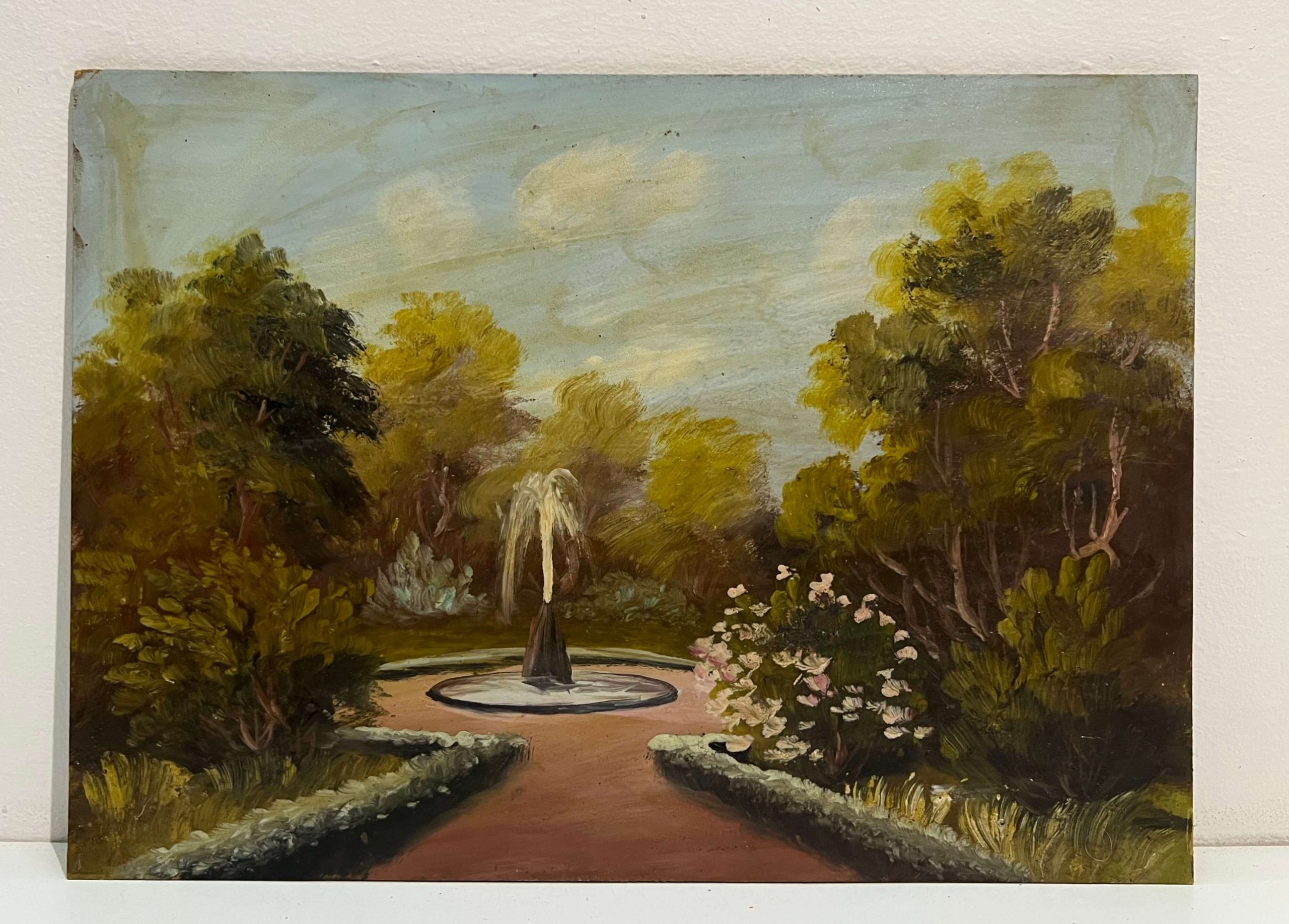 Régi, nagyon szépen megfestett park látkép ábrázolás ismeretlen művésztől, amely egy hozzáillő keretezést igényel.