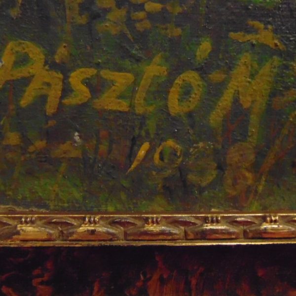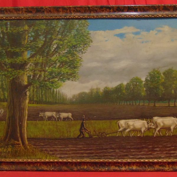 Hangulatos, múltat idéző vidéki életkép ábrázolás 1938-ból hozzáillő keretben, azonnal falra akasztható állapotban! A művész beazonosítása még folyamatban van!
