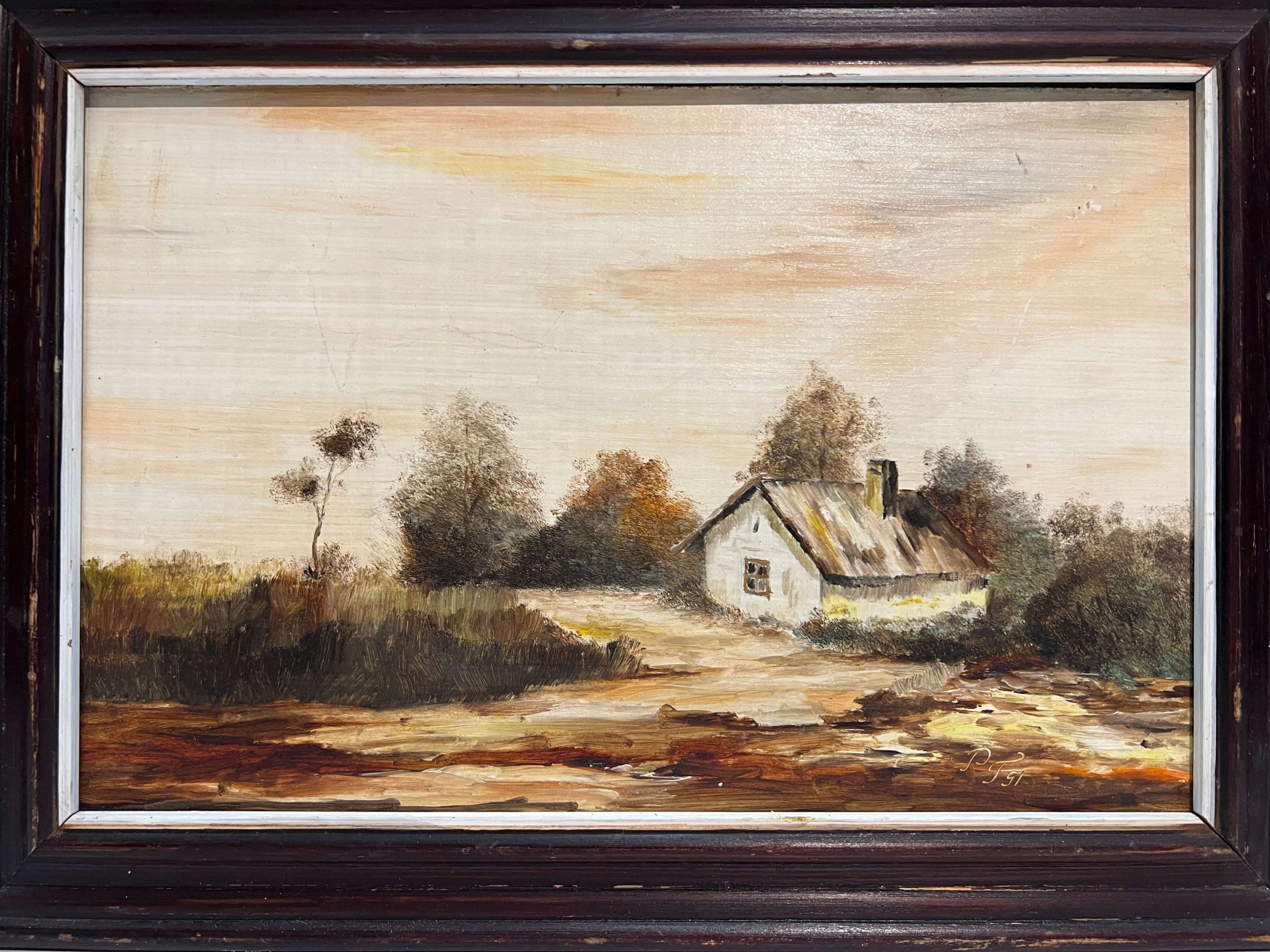 Különleges hangulatú tanyaábrázolás, amely a szemlélőt visszarepíti a múltba! Igazán varázslatos munka, egy olaj-farost alkotás 1991-ből. Jelezve jobbra lent: PT 91. Feltételezhetően kortárs magyar művész alkotása, de még beazonosítás alatt van a kiléte. Hozzáillő, patinás keretben van a kép, így azonnal falra is akasztható! Extra gyűjtői darab!
