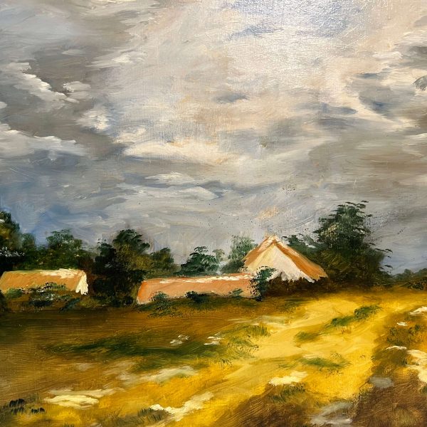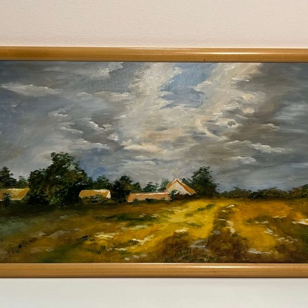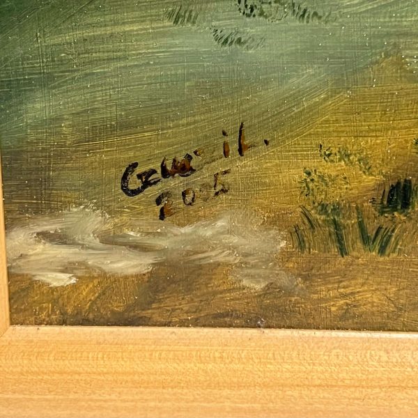 Szépen megfestett tájkép, olaj faroston alkotás kortárs magyar festőtől 2005-ből, fa keretben, azonnal falra akasztható állapotban. A művész beazonosítása folyamatban van.