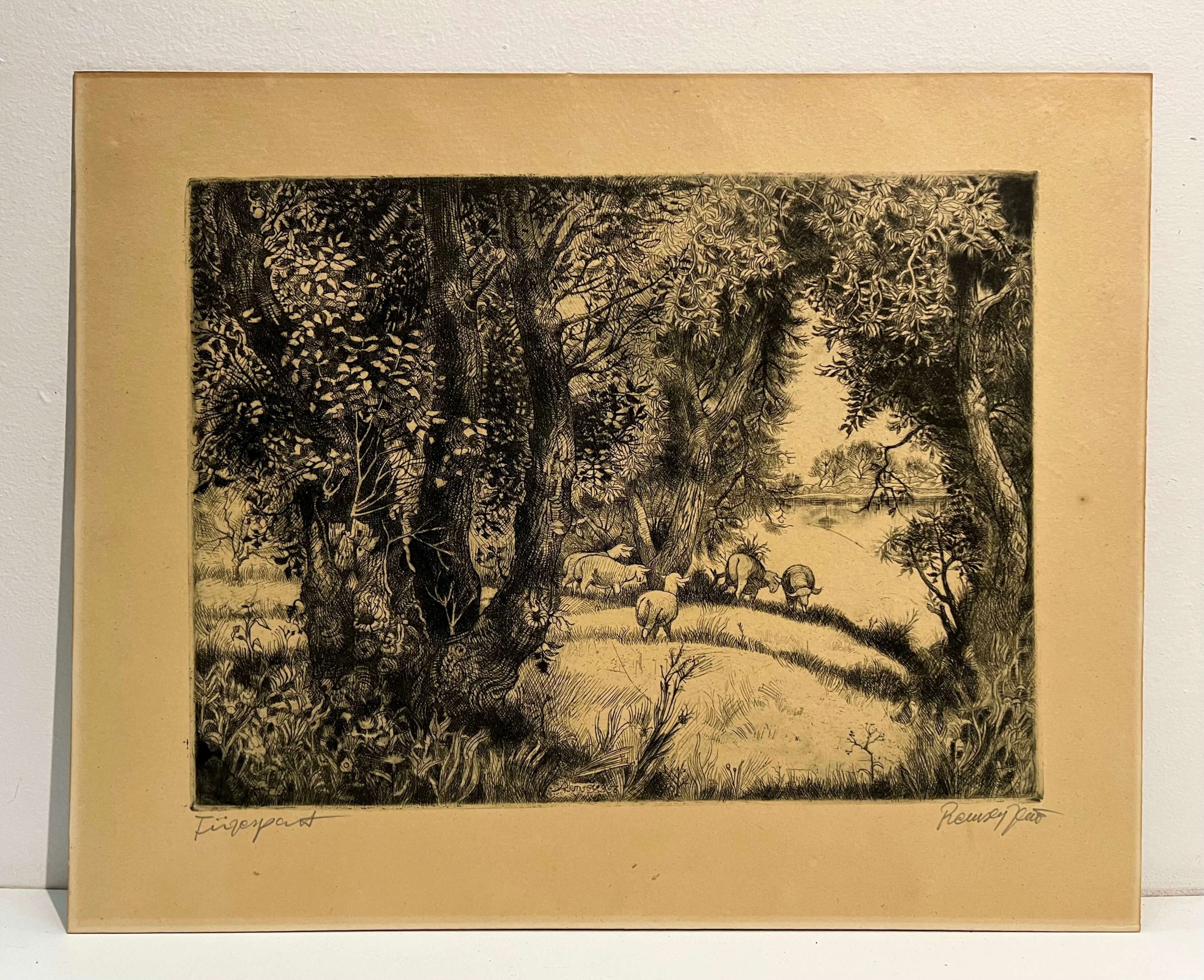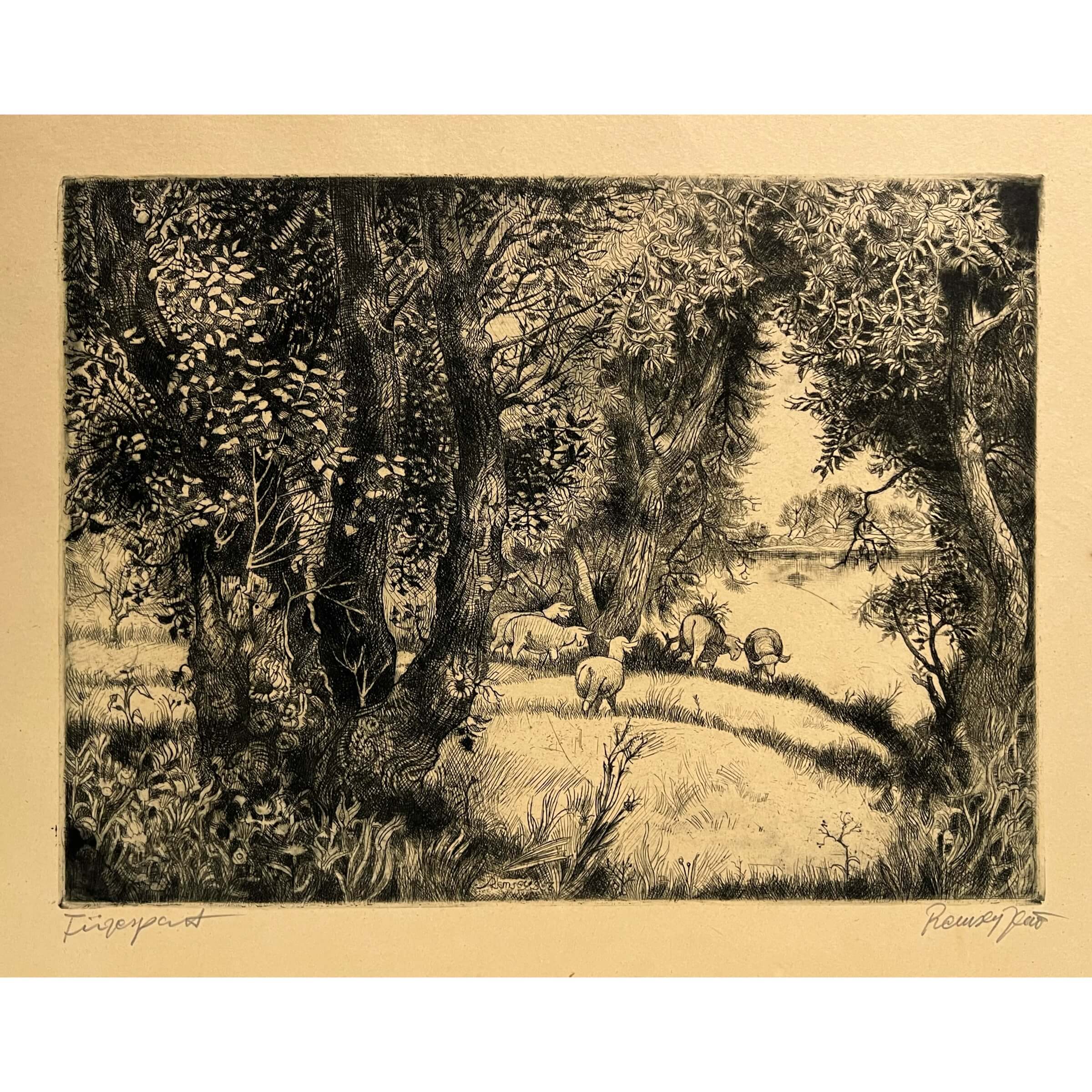 Régi, igényesen elkészített fekete-fehér rézkarc munka Remsey Jenő György (1885-1980) híres magyar festő, grafikustól 1956-ból, amely egy hozzáillő, paszpartus keretezést igényel.