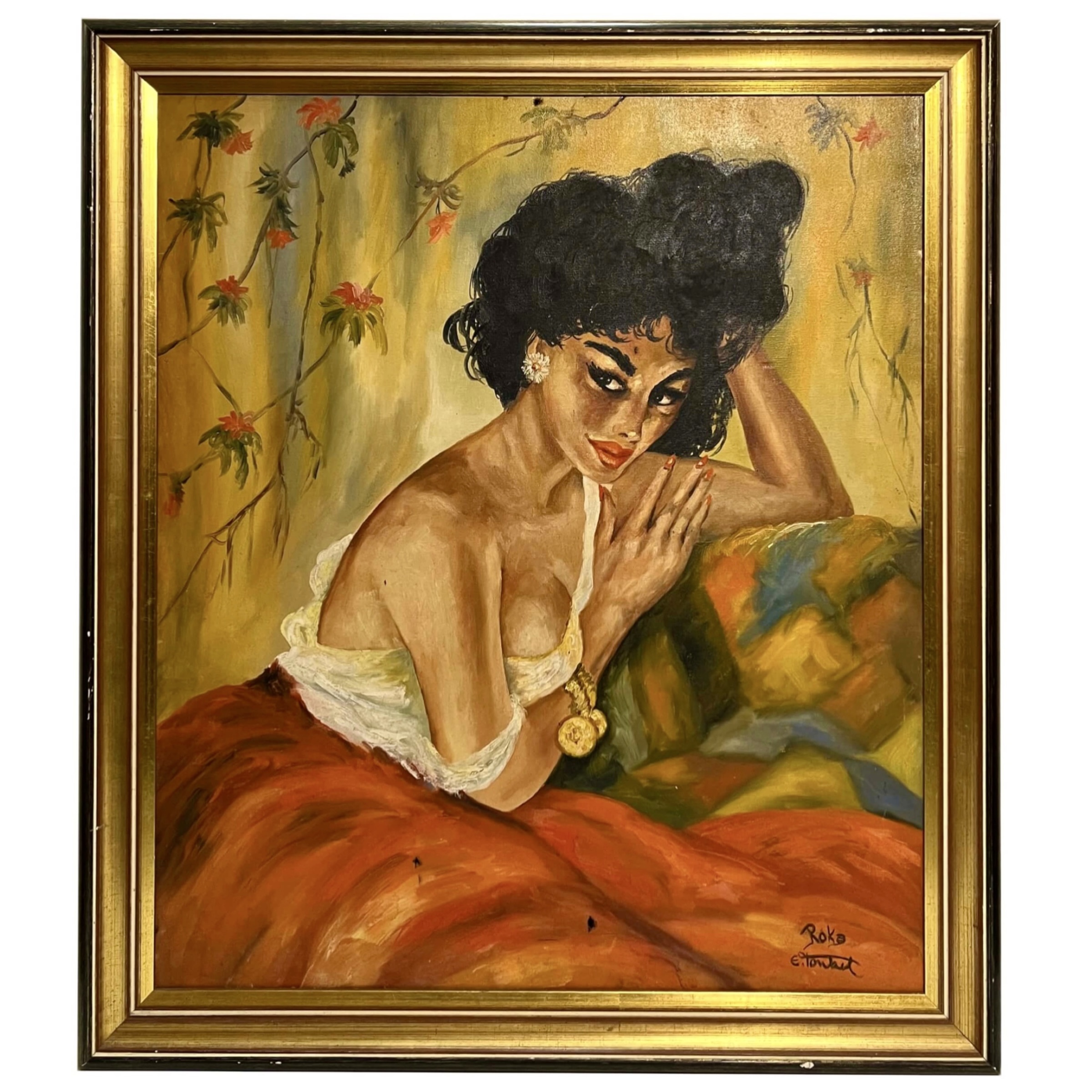 Nagy méretű, gyönyörű olaj-vászon alkotás Róka Károly (1912-1999) (Charles Roka) híres magyar festőtől, hozzáillő keretben! Az alkotás pár apróbb javításra szorul, ennek megfelelően lett kialakítva az ára. Extra gyűjtői darab!