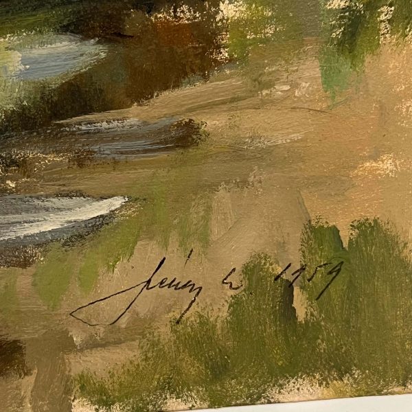 Régi, ajándékba szánt alkotás, kellemes színvilágú folyóparti látkép ábrázolás Székely Endre (1917-2014) magyar festőművésztől 1959-ből, amely egy szép, korban is hozzáillő keretezést igényel! Gyűjtői darab!