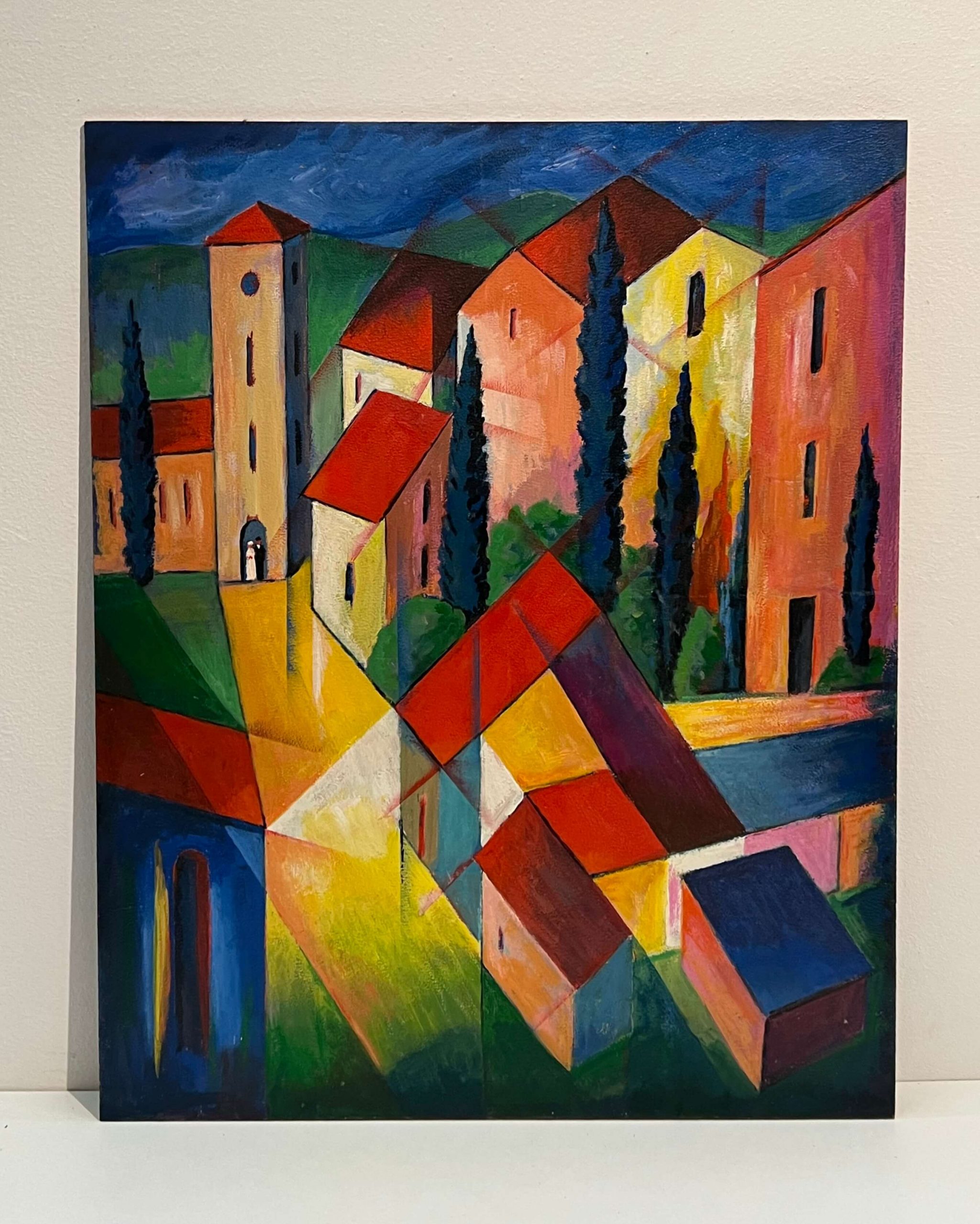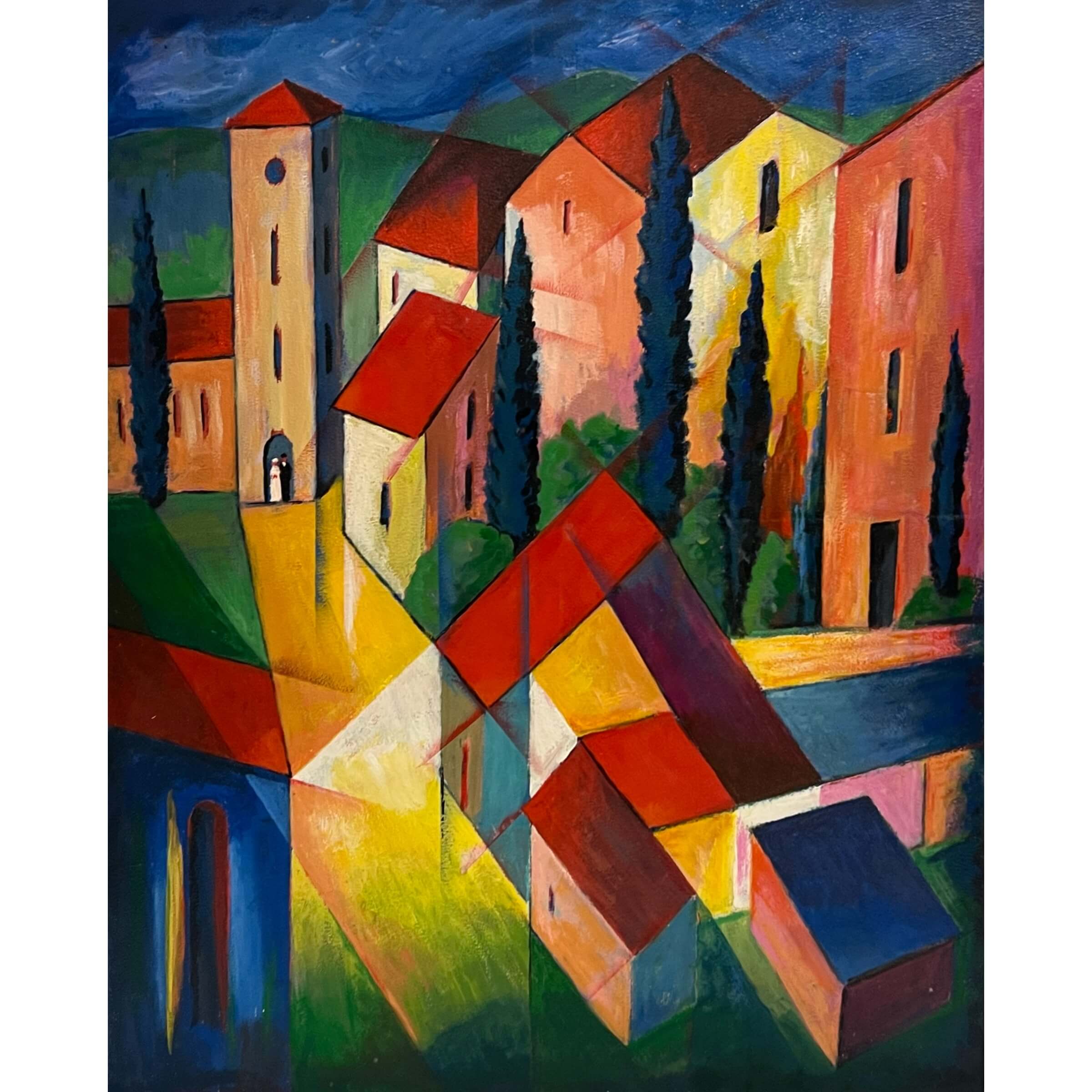 Pazar színvilágú mediterrán utcai jelenetet ábrázoló alkotás Székely Endre (1917-2014) magyar festőművésztől, mely csak egy hozzáillő keretezést igényel és falra is akasztható. A művészre jellemző, hogy csak nagyon kevés alkotását látta el jelzéssel.