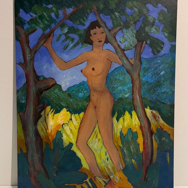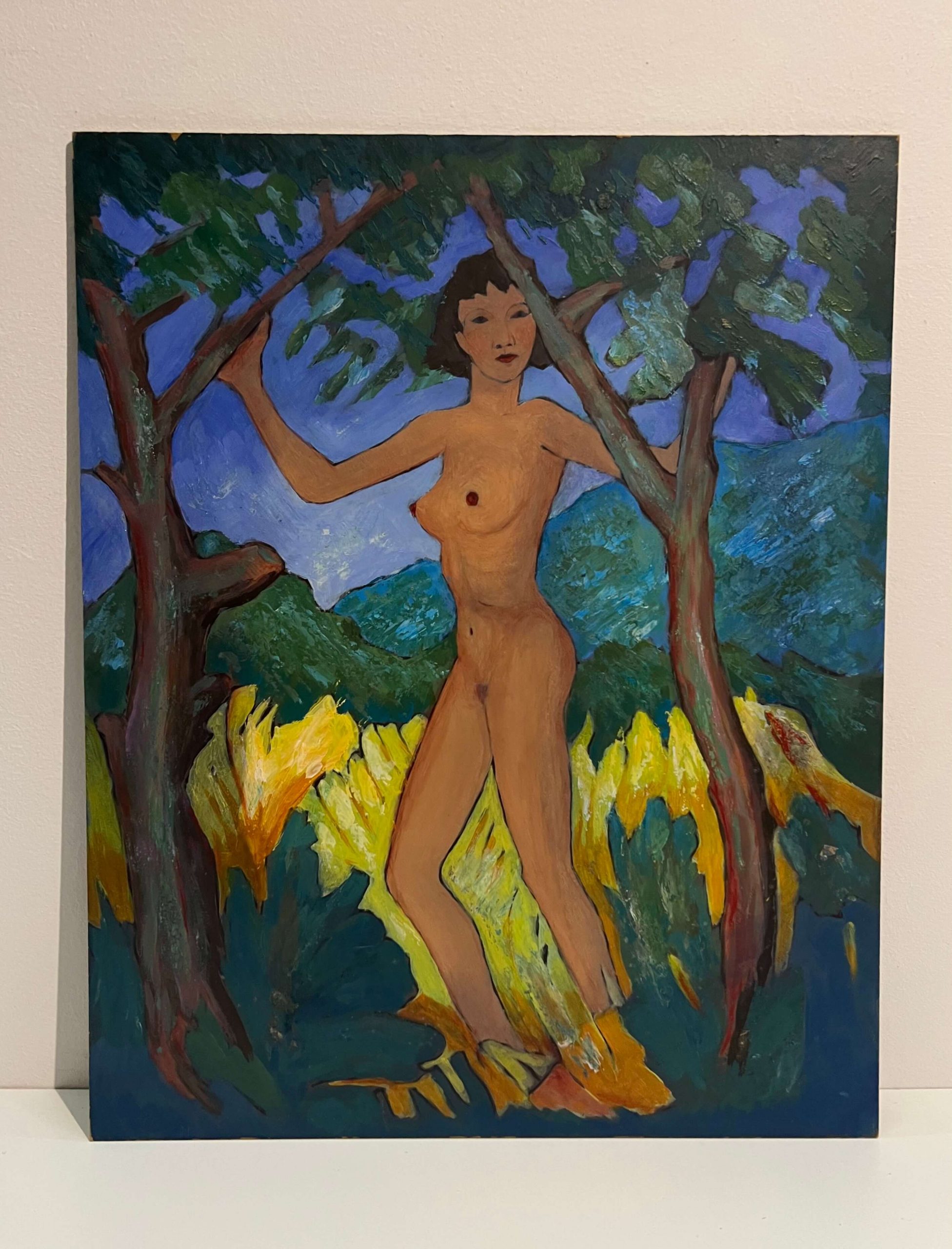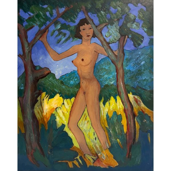 Kellemes színvilággal megfestett aktábrázolás a természetben Székely Endre (1917-2014) magyar festőművésztől, csak egy hozzáillő keretezésre várva. A művészre jellemző, hogy csak nagyon kevés alkotását látta el jelzéssel.