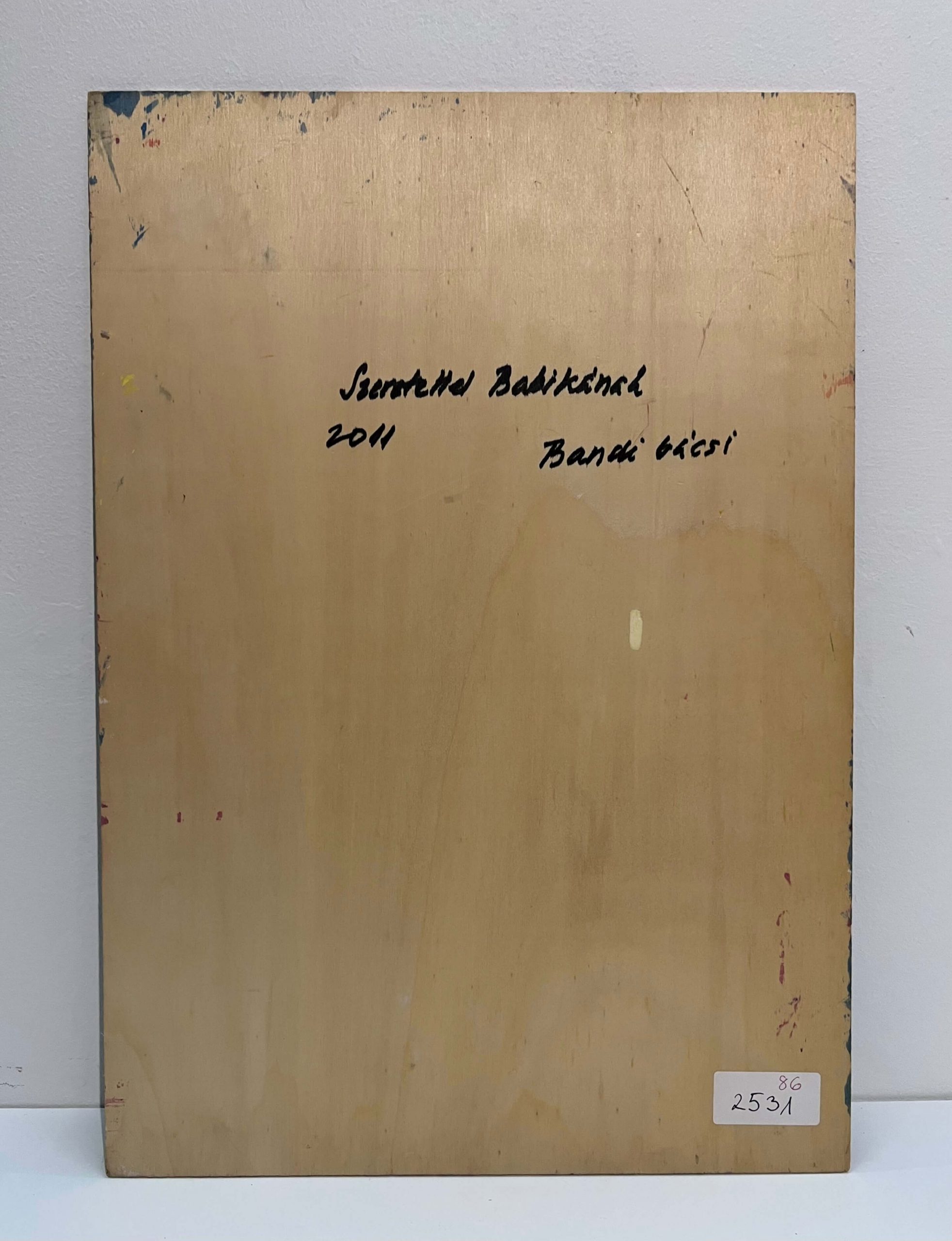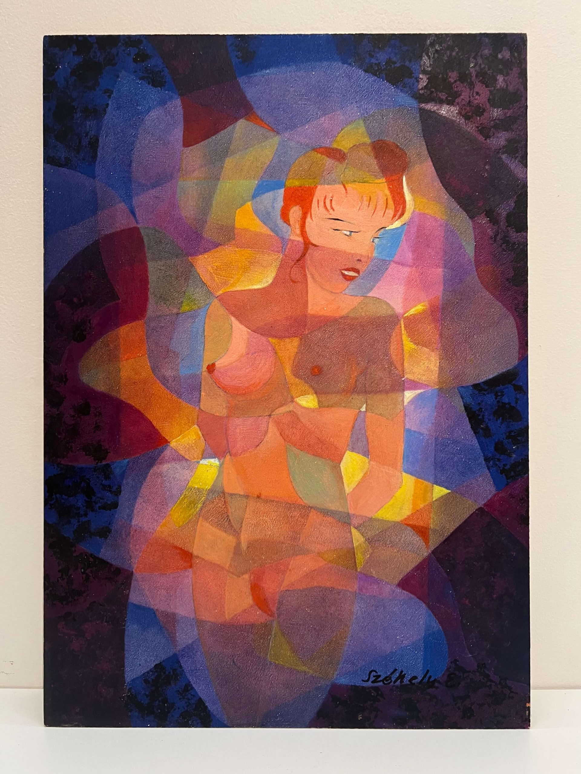Különleges, színpompás aktábrázolás Székely Endre (1917-2014) festőművésztől. Halála előtt 3 évvel festette az alkotást. A kép hátulján: Szeretettel Babikának – 2011 Bandi bácsi. Magyarországra történő hazaköltözését követően rokona Babika gondozta az idős művészt. Gyűjtőknek, befektetésre ajánlott alkotás!