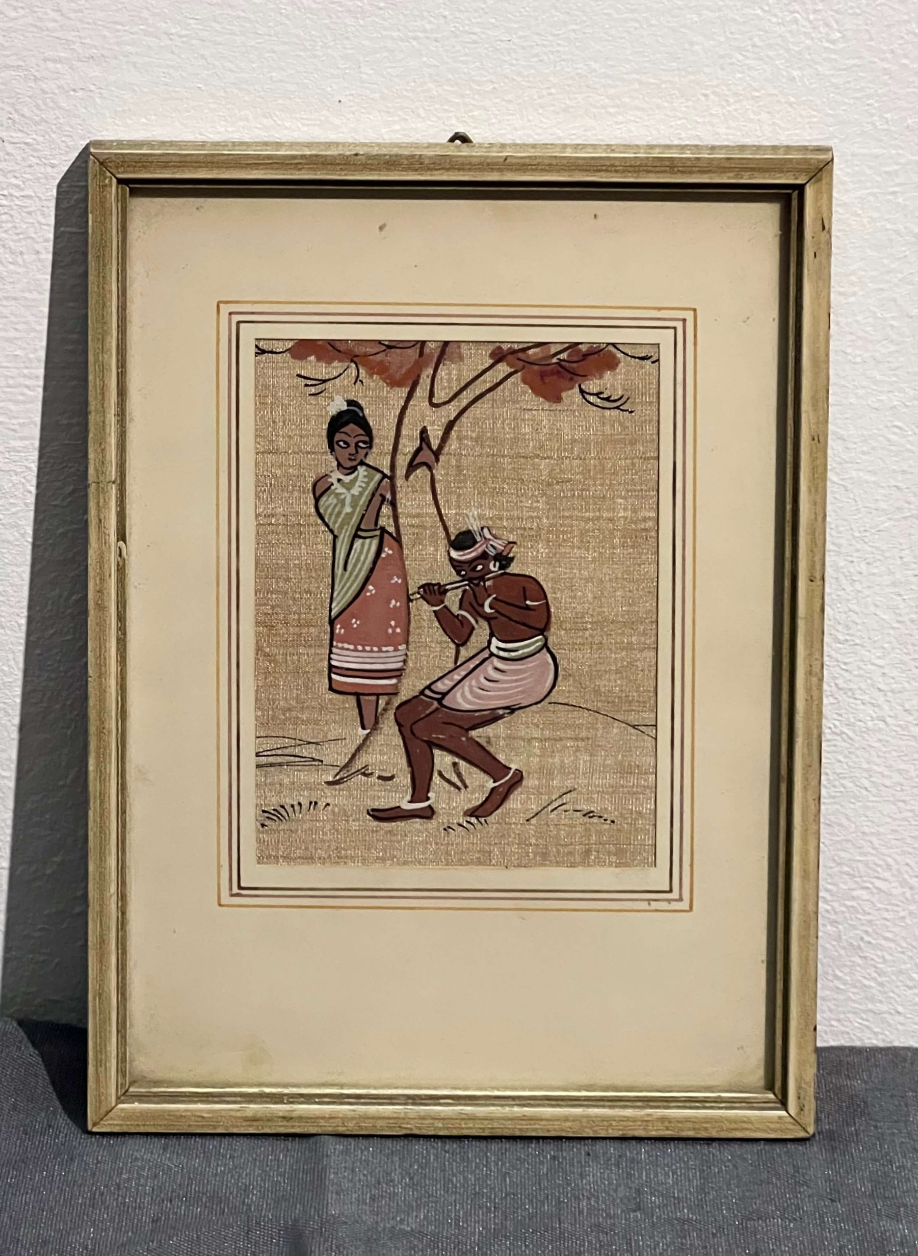 Miniatűr, selyemre készített alkotás hozzáillő, üvegezett keretben (csak egy paszpartu cserét igényel).