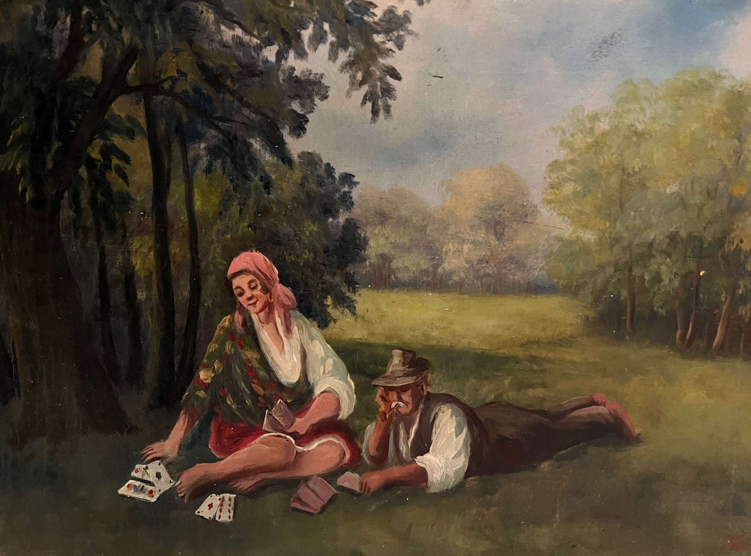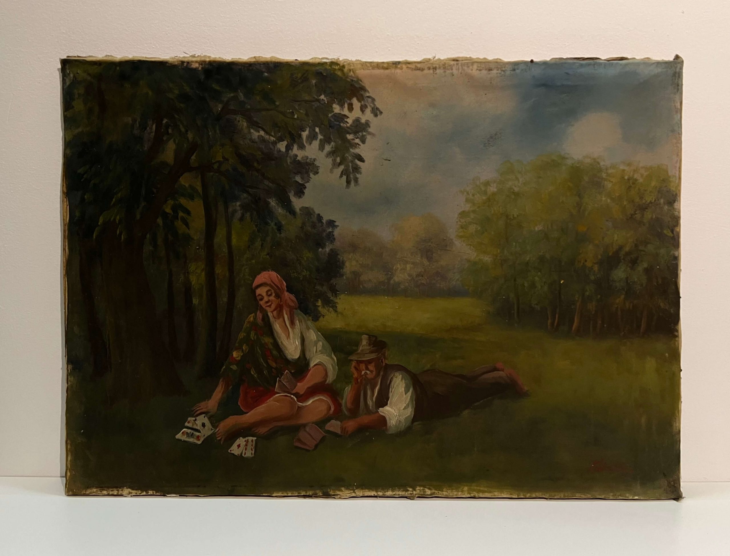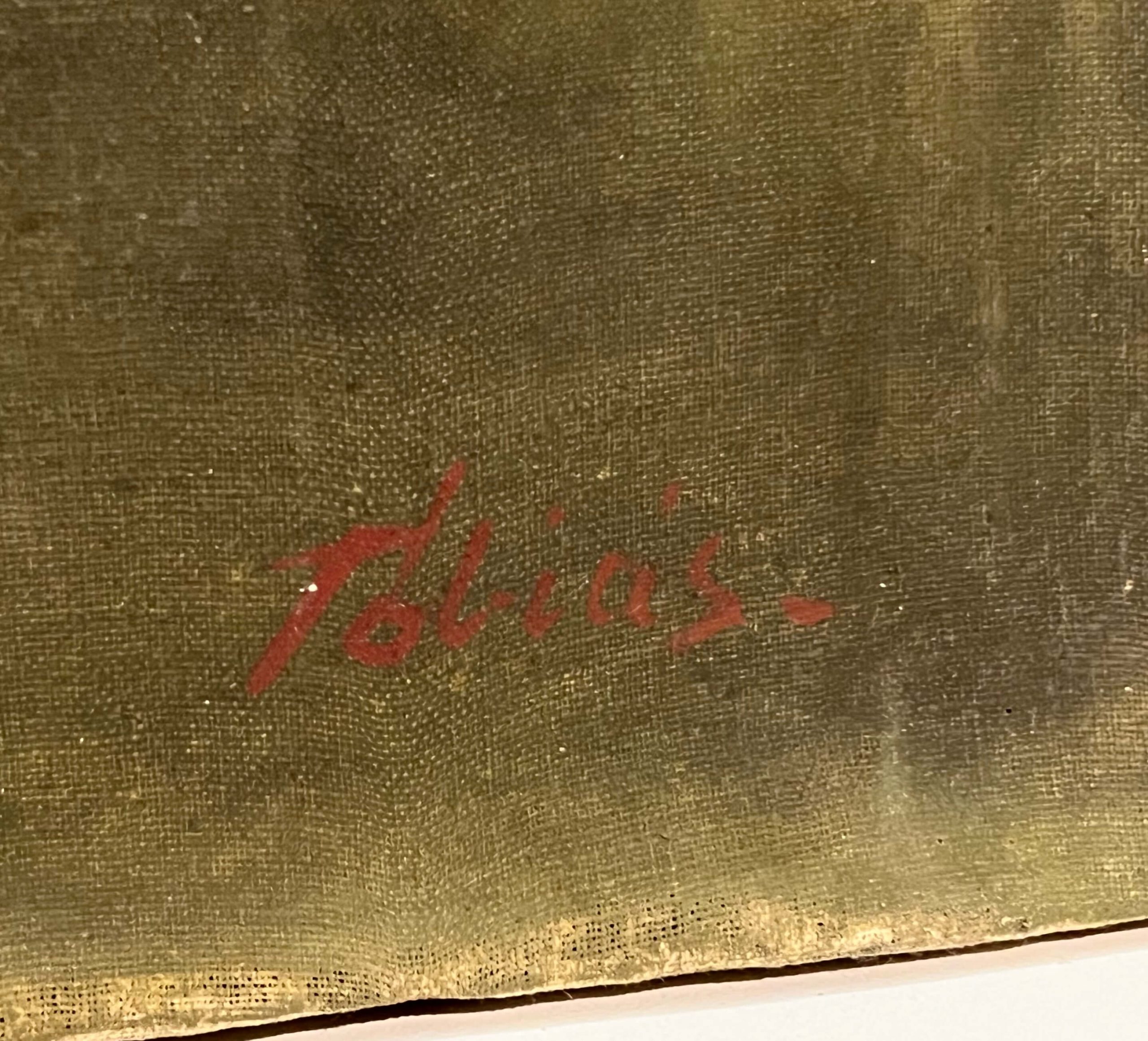Szépen megfestett, múltat idéző olaj-vászon életkép ábrázolás a 40-50-es évekből (vagy még régebbről) Tóbiás György (1902-1968) híres magyar festőtől! Gyűjtői darab!