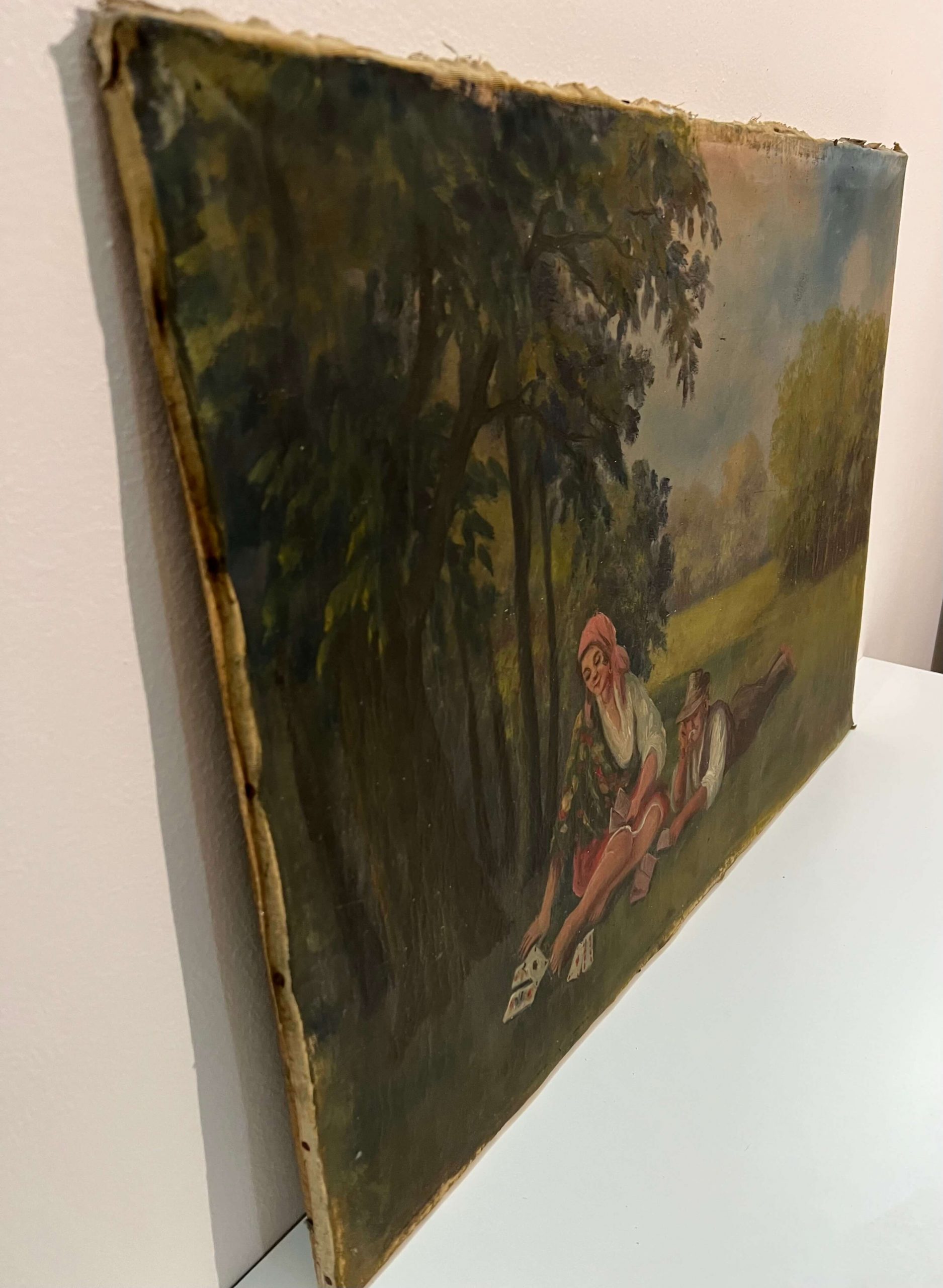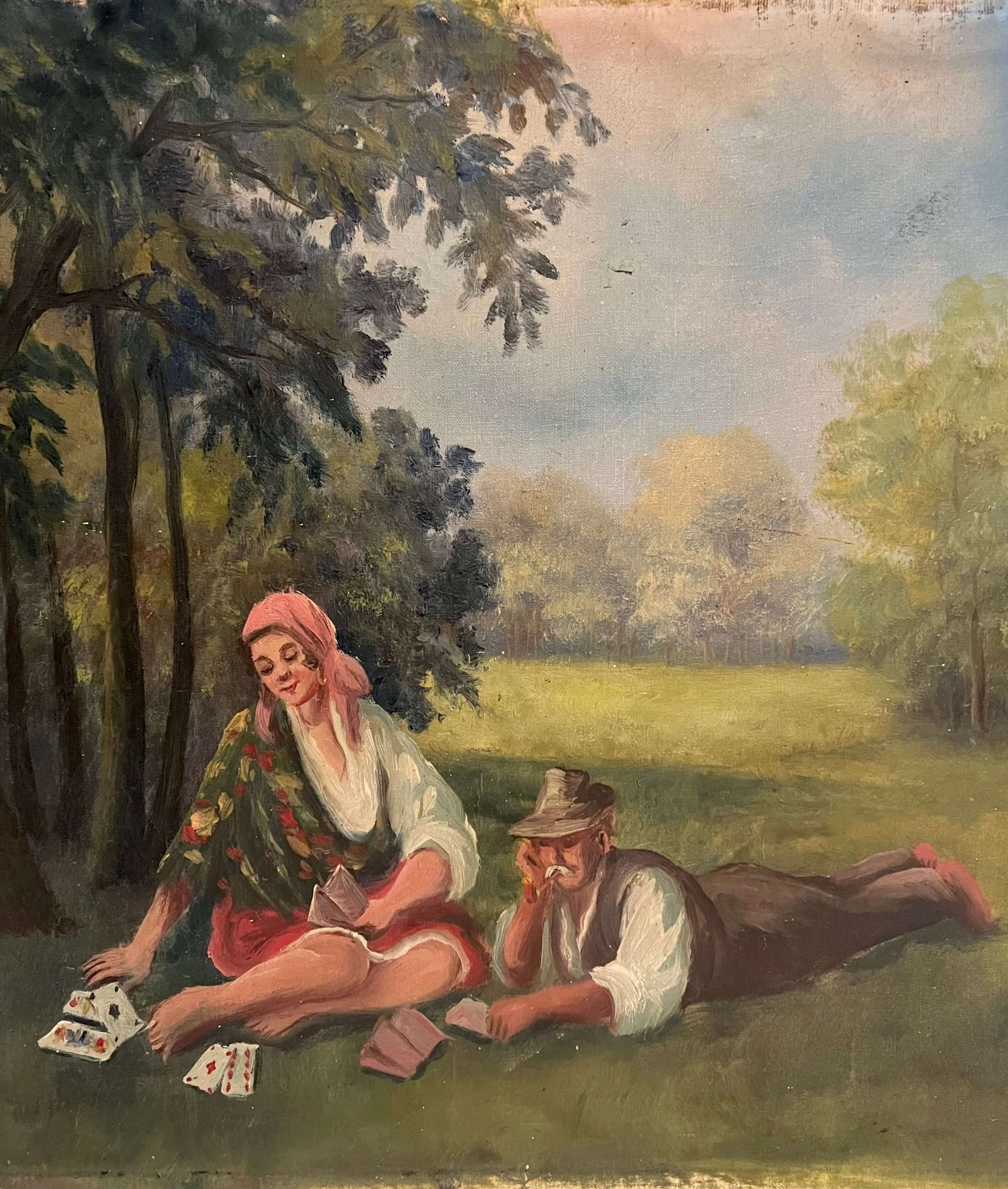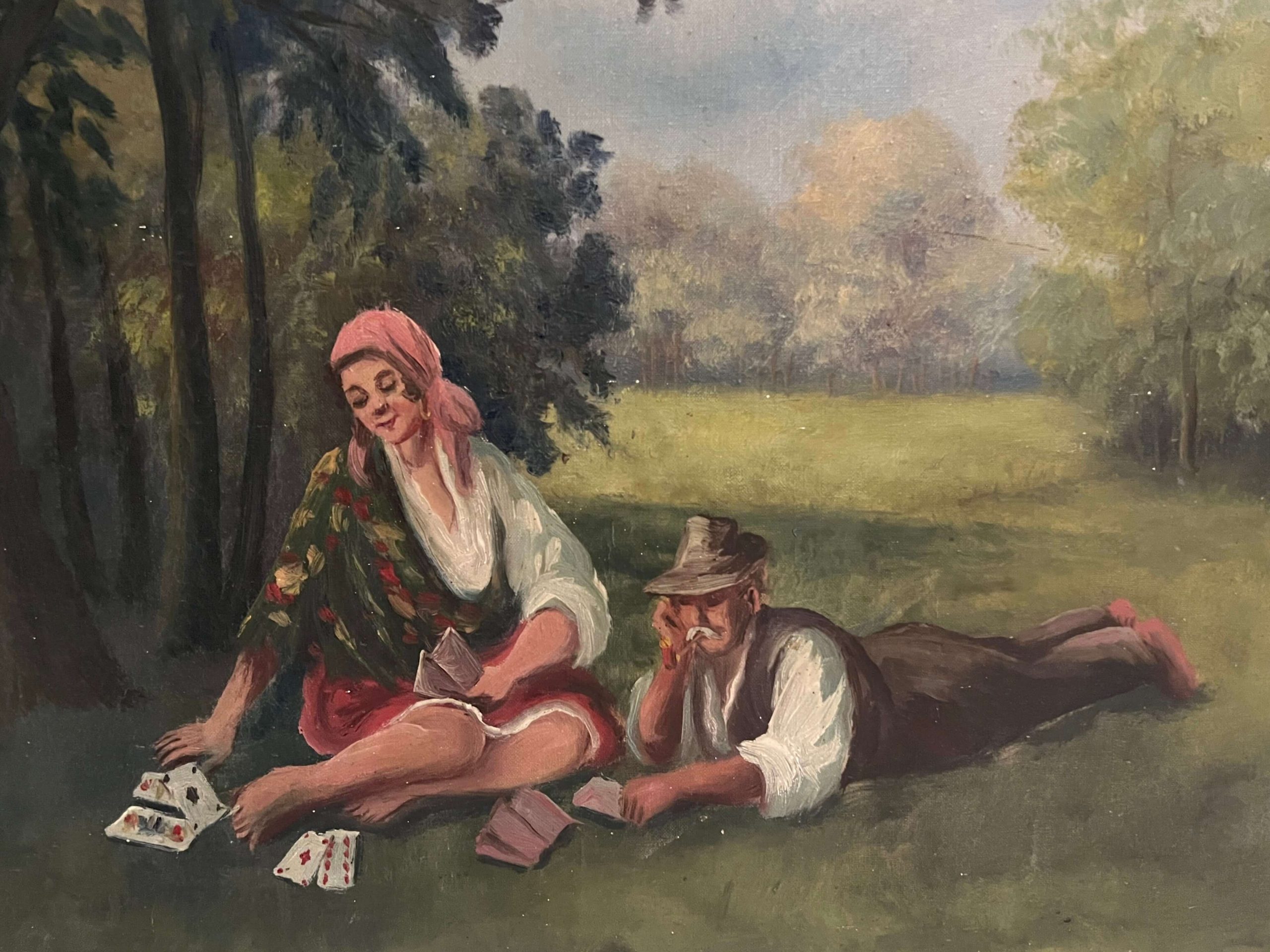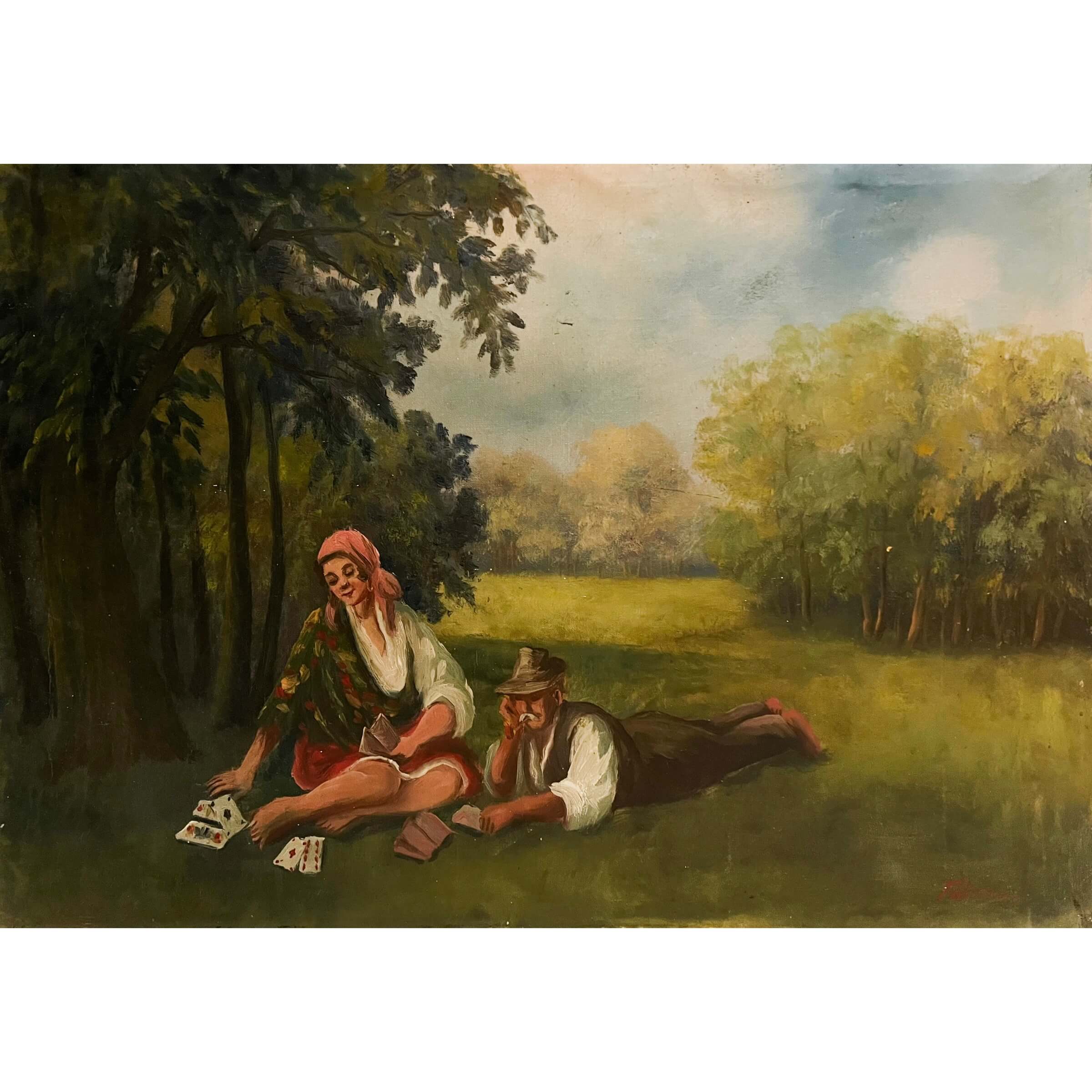 Szépen megfestett, múltat idéző olaj-vászon életkép ábrázolás a 40-50-es évekből (vagy még régebbről) Tóbiás György (1902-1968) híres magyar festőtől! Gyűjtői darab!