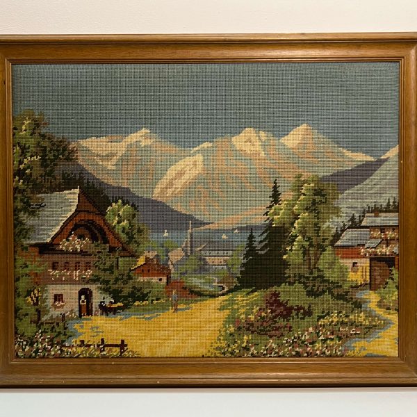 Hímzés. Nagy méretű, régi, szépen elkészített gobelin munka hozzáillő keretben, azonnal falra akasztható állapotban.