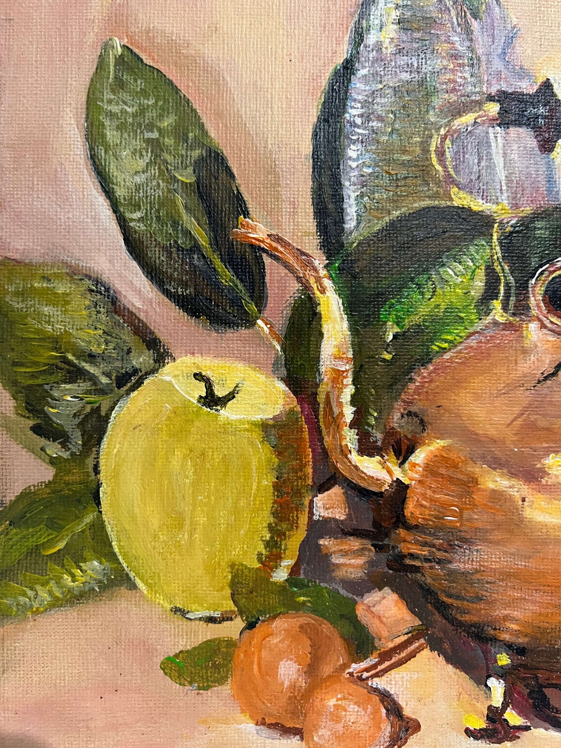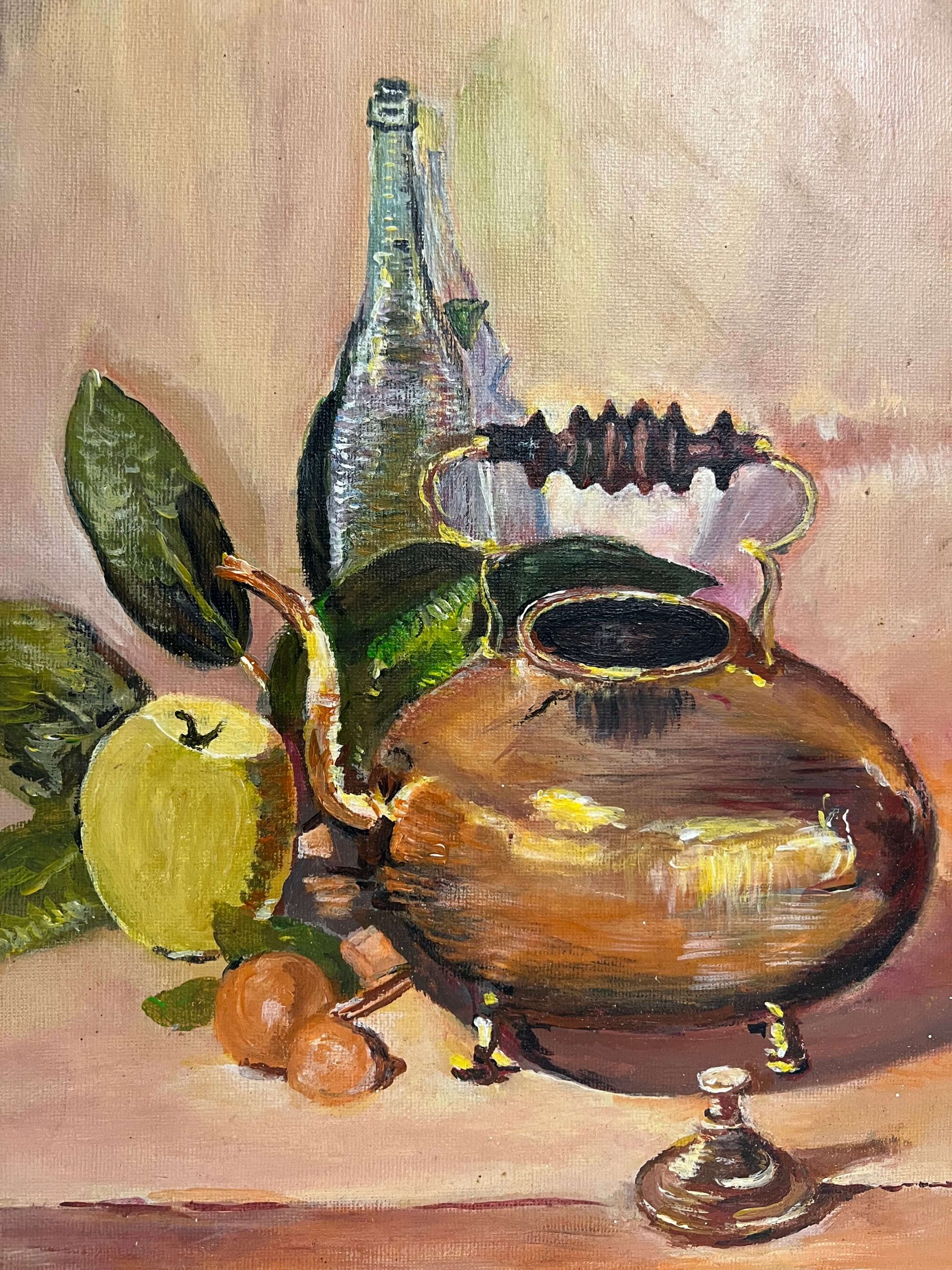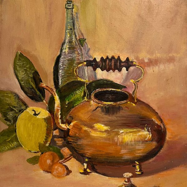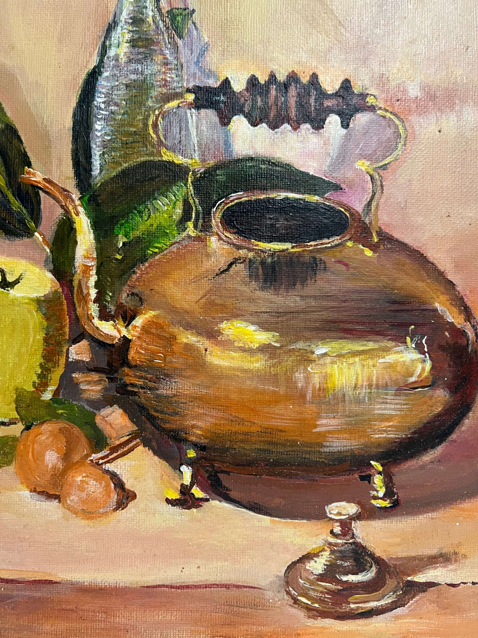 Igényesen megfestett asztali csendélet kompozíció, olaj-vászon alkotás gyönyörű színvilággal megfestve Unger Károly (1919- ) híres magyar festőtől a a becsült 70-80-as évekből! Extra igényes munka, egy gyűjtői csemege és nem utolsó sorban kiváló befektetési eszköz is!