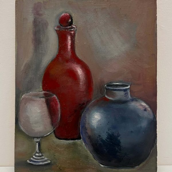 Üvegek kékben-vörösben – Ismeretlen festő