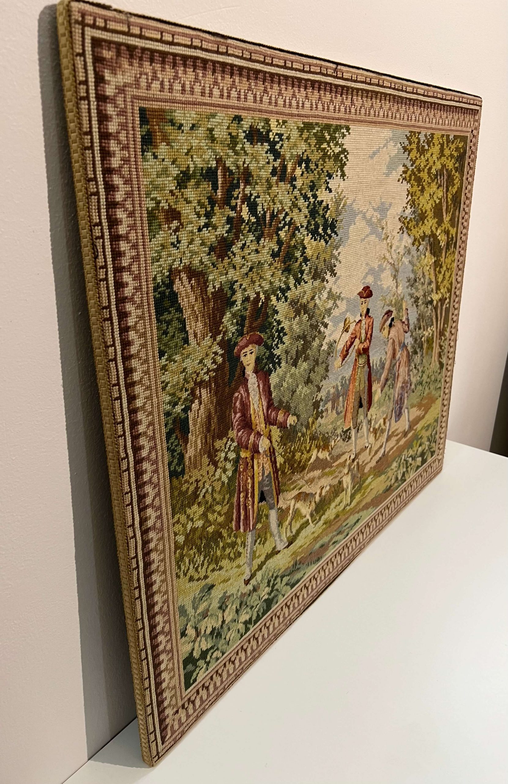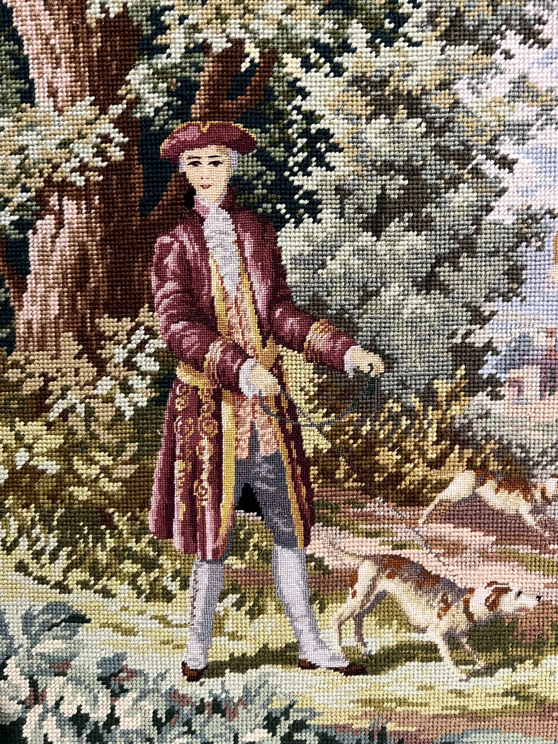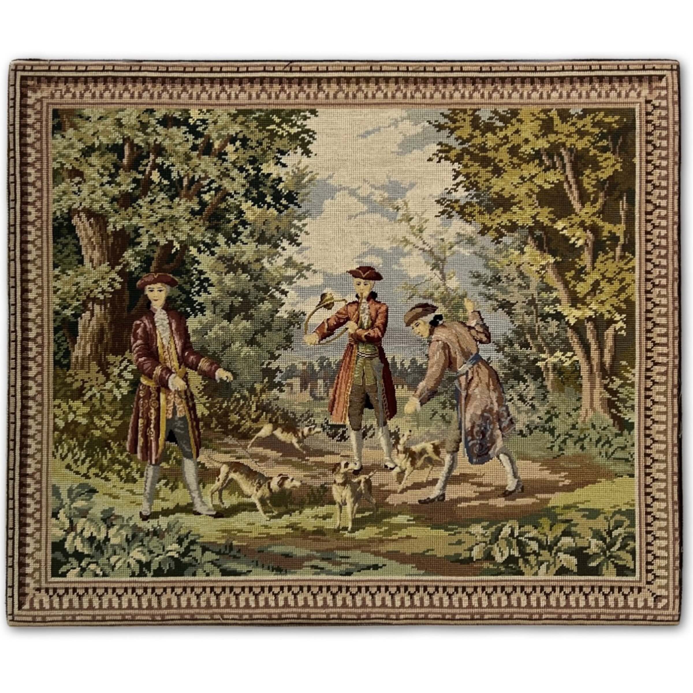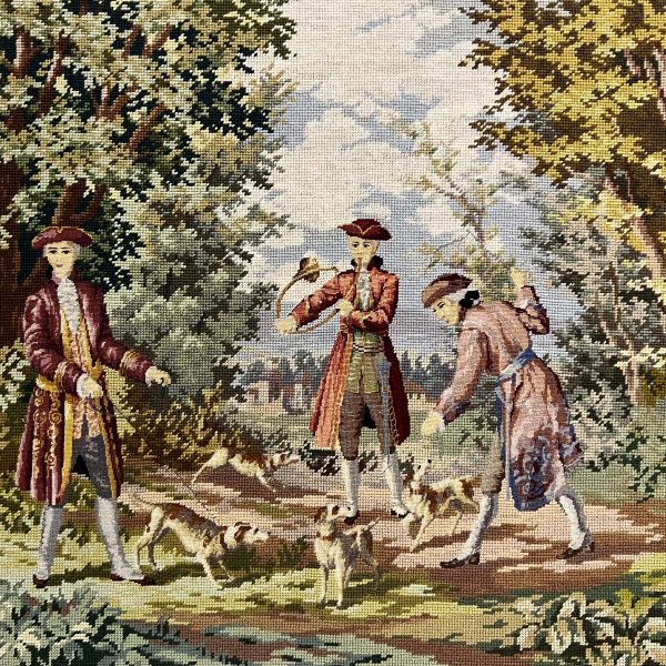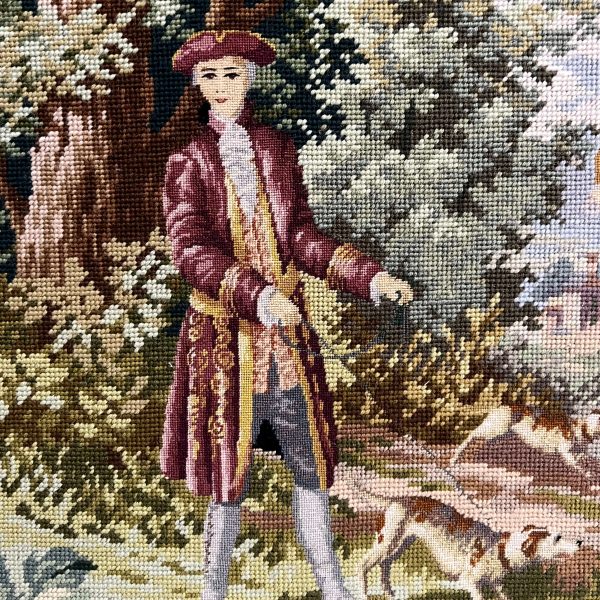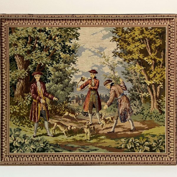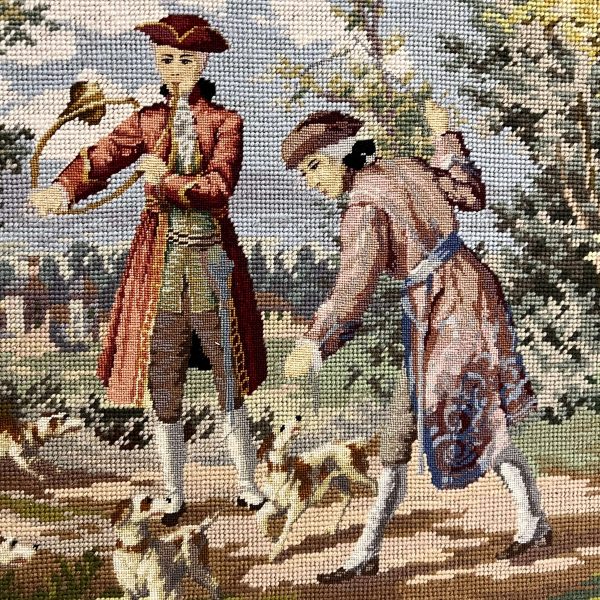 Hímzés. Igényes, gyönyörű színvilágú tű gobelin alkotás minimum a 60-70-es évekből, de akár jóval idősebb is lehet! Akár így keret nélkül is falra akasztható, de egy impozáns, vastag, antik keretben fog kiteljesedni! Extra gyűjtői darab!