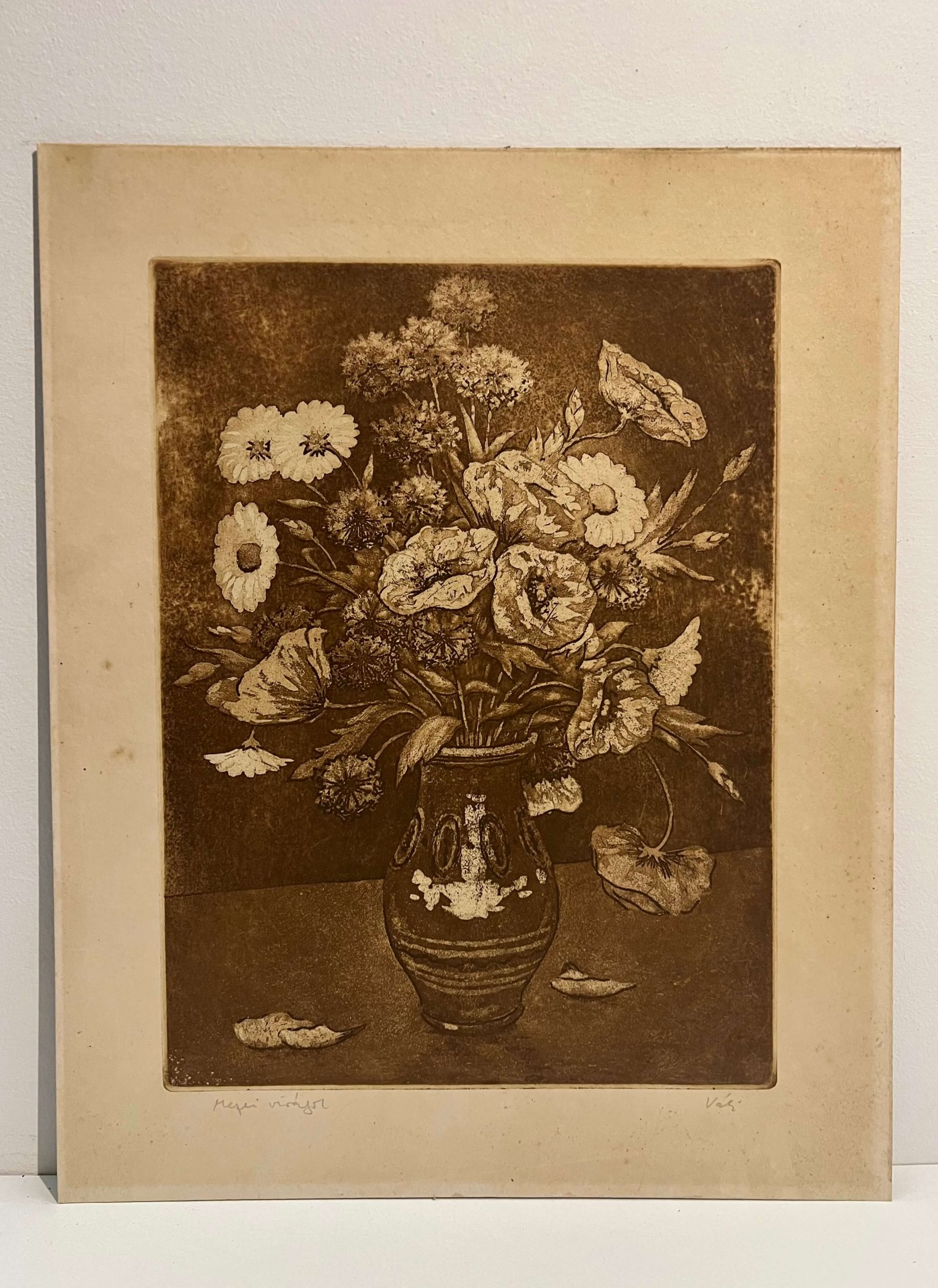 Kvalitásosan elkészített színezett linóleummetszet alkotás Váli Zoltán (1910- ) híres magyar grafikustól a becsült 60-70-es évekből. Gyűjtői darab!