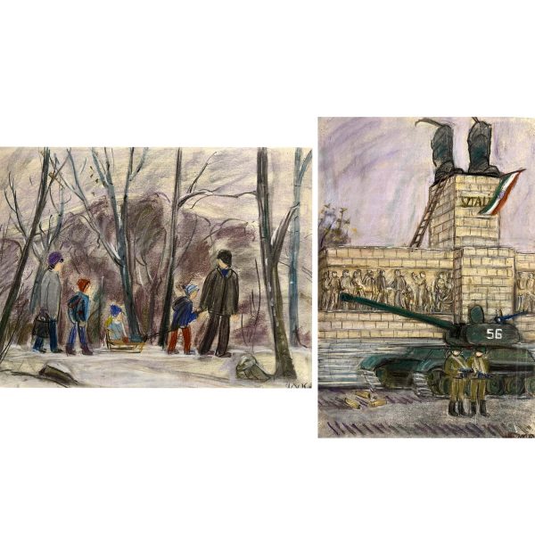 Varga Ferenc (1928-2019) Szánkóval a téli erdőben, 2000 / ’56 emlékére, 2006