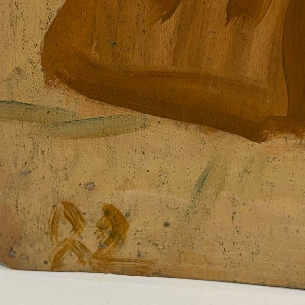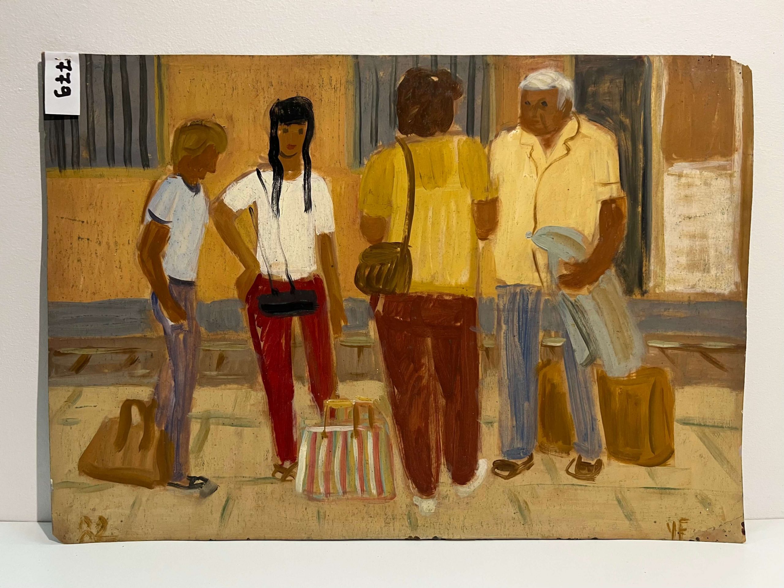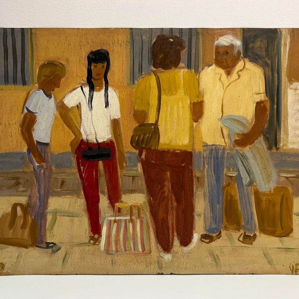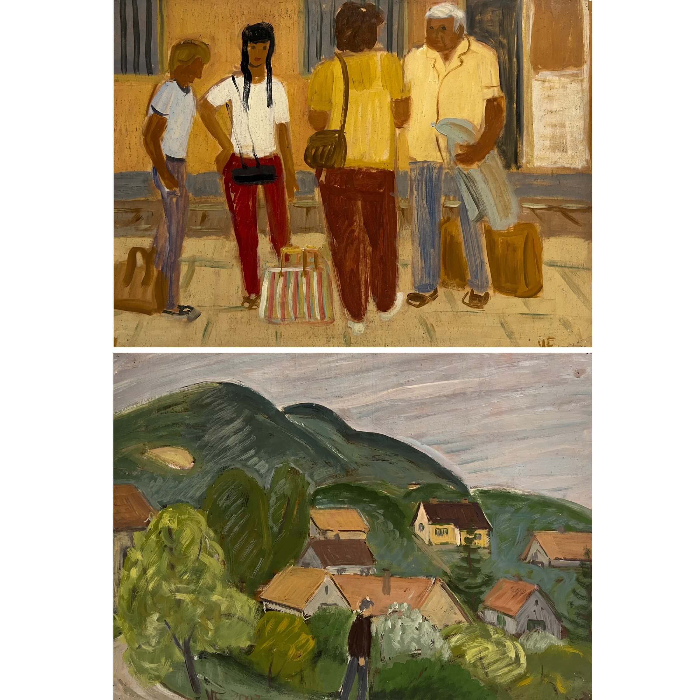 Retró hangulatú, két oldalas szocreál alkotás Varga Ferenc (1928-2019) festőművésztől, amely igény szerint keretezhető.