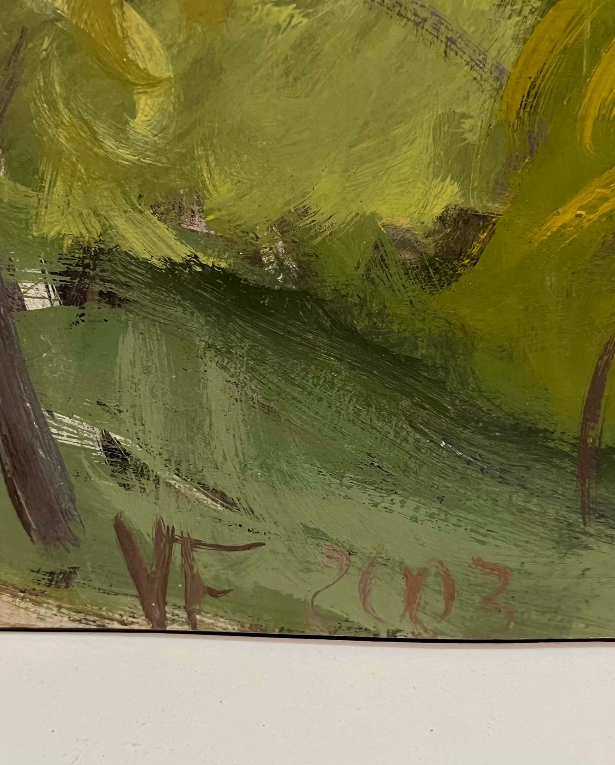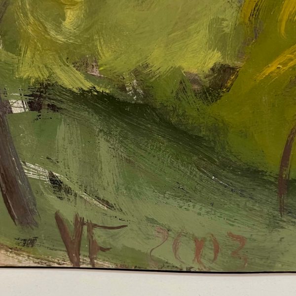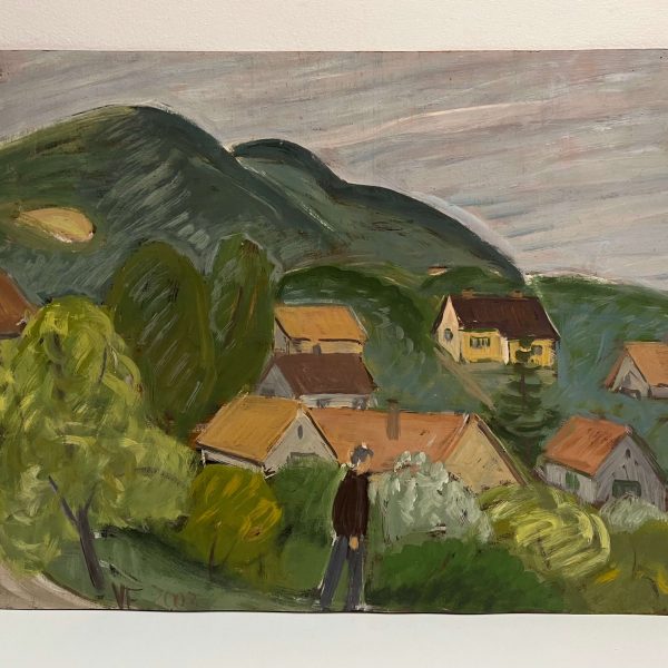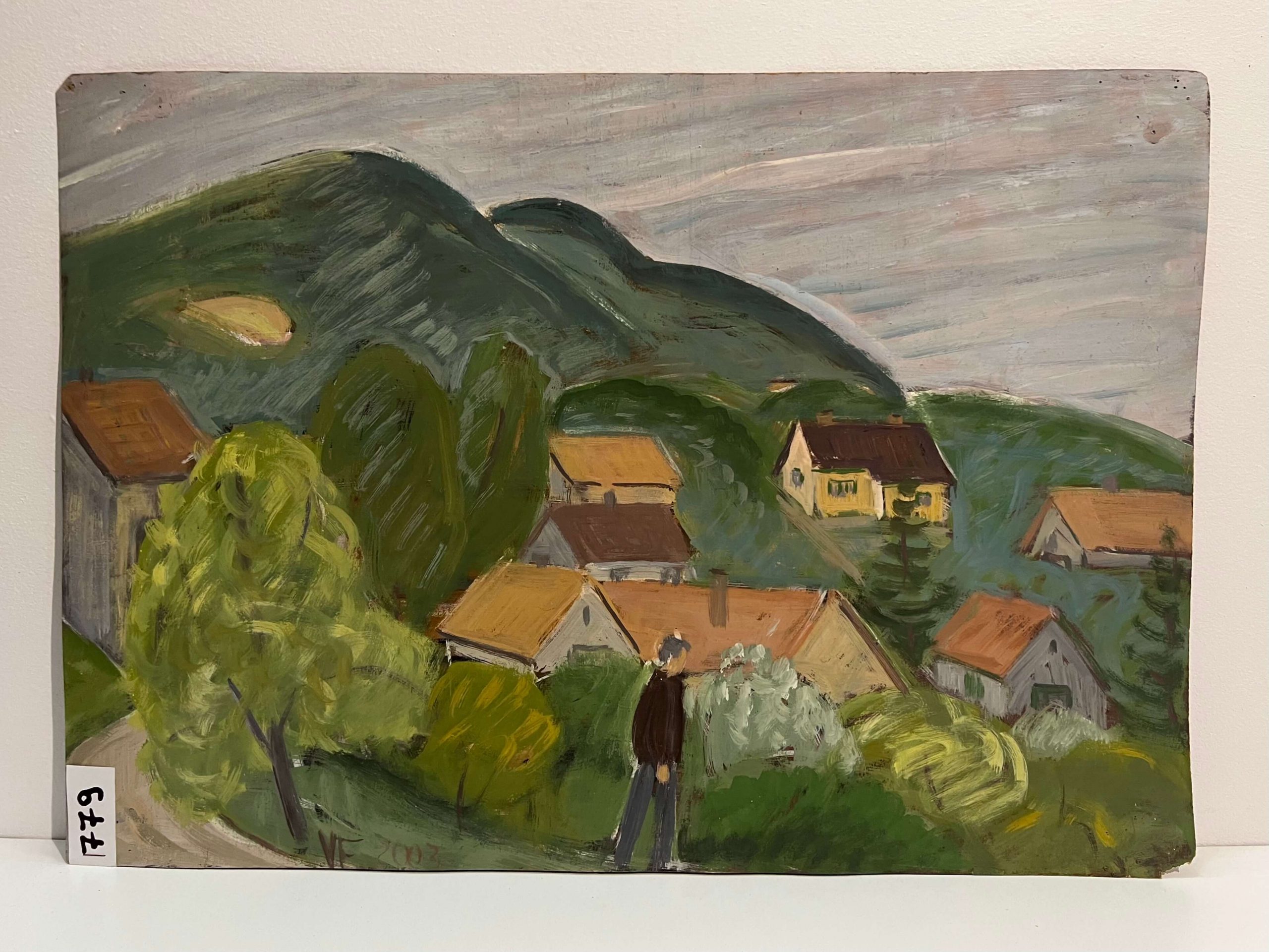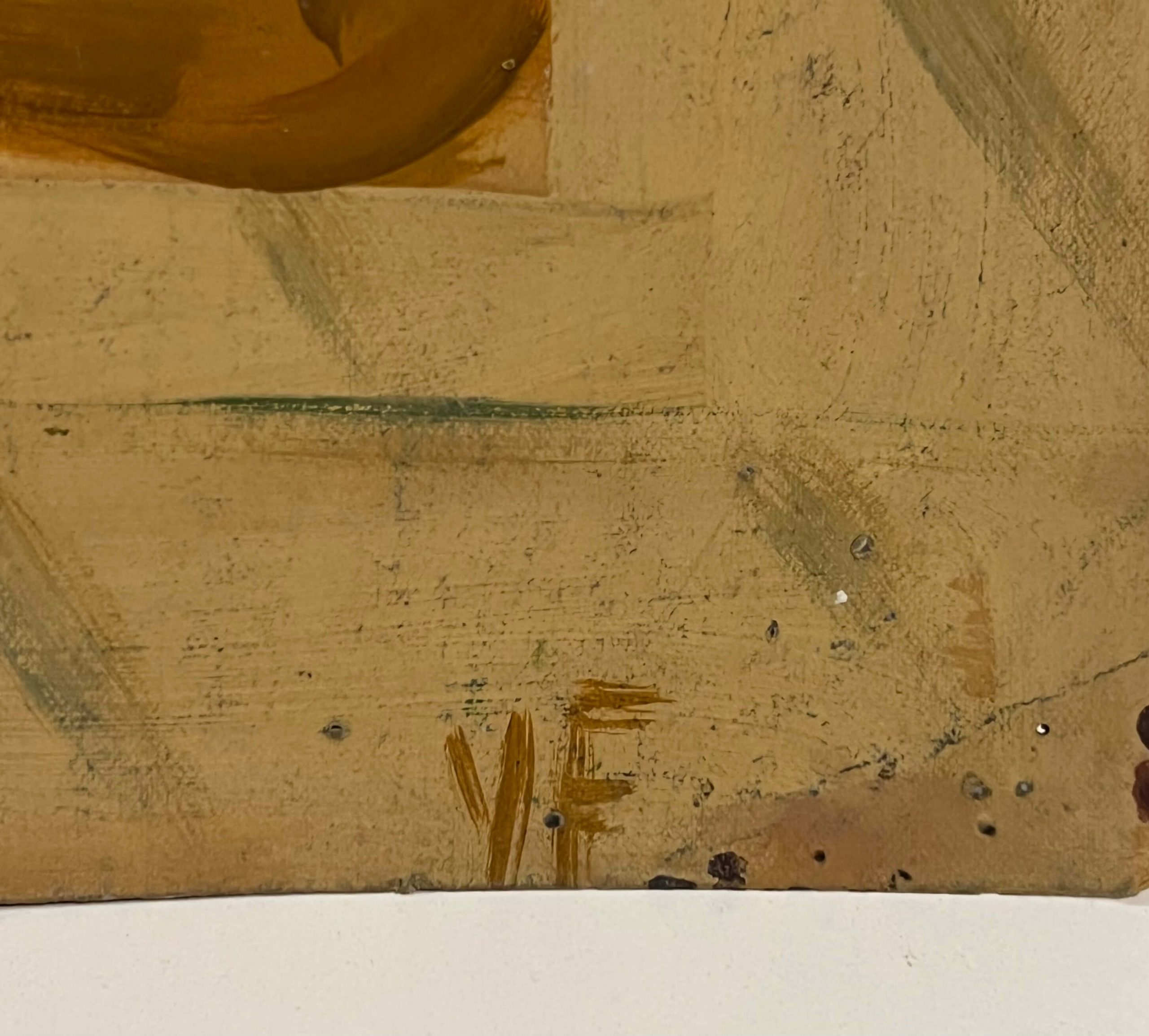 Retró hangulatú, két oldalas szocreál alkotás Varga Ferenc (1928-2019) festőművésztől, amely igény szerint keretezhető.