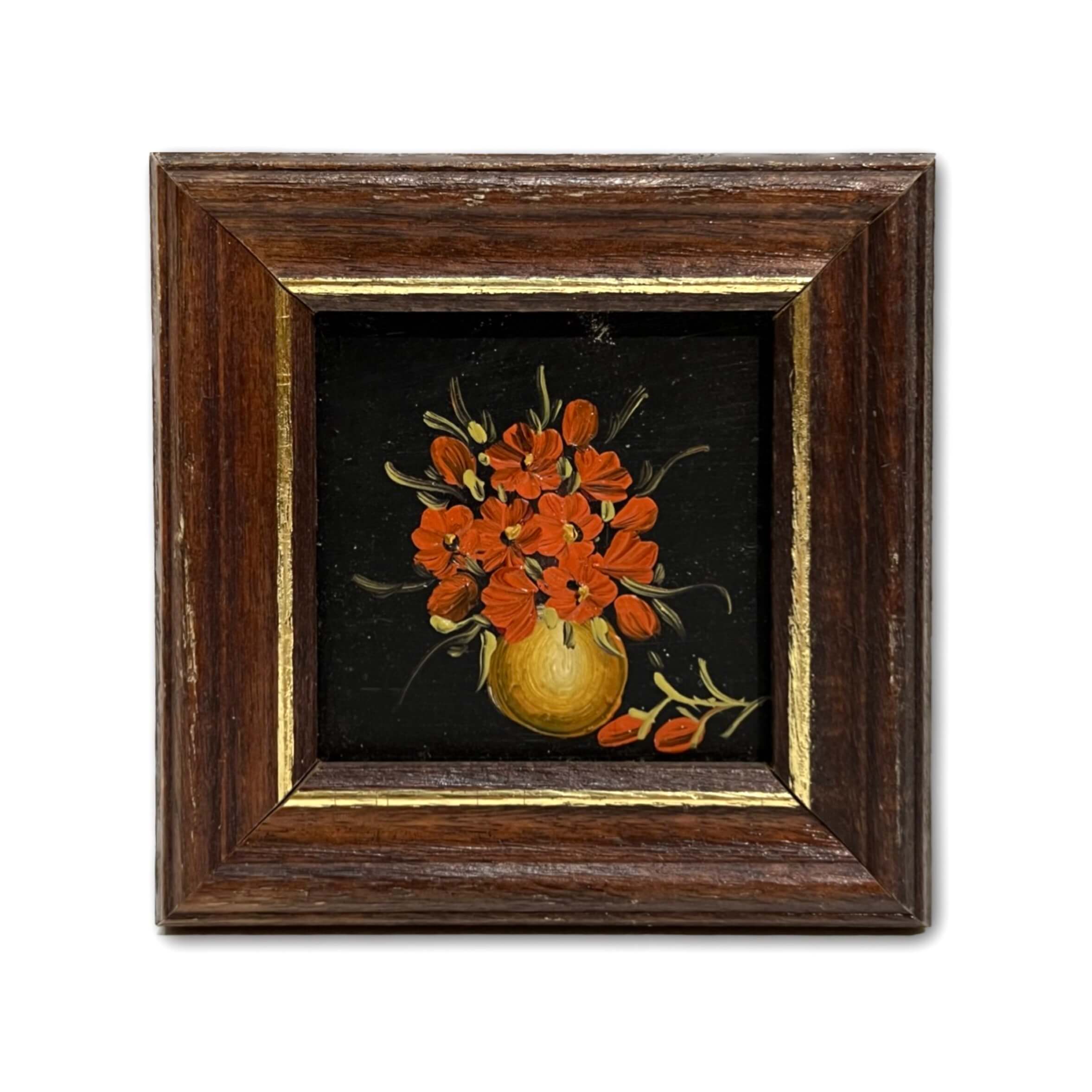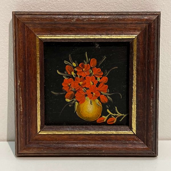 Miniatűr virágábrázolás (sorozat) keretezve, azonnal falra akasztható állapotban.