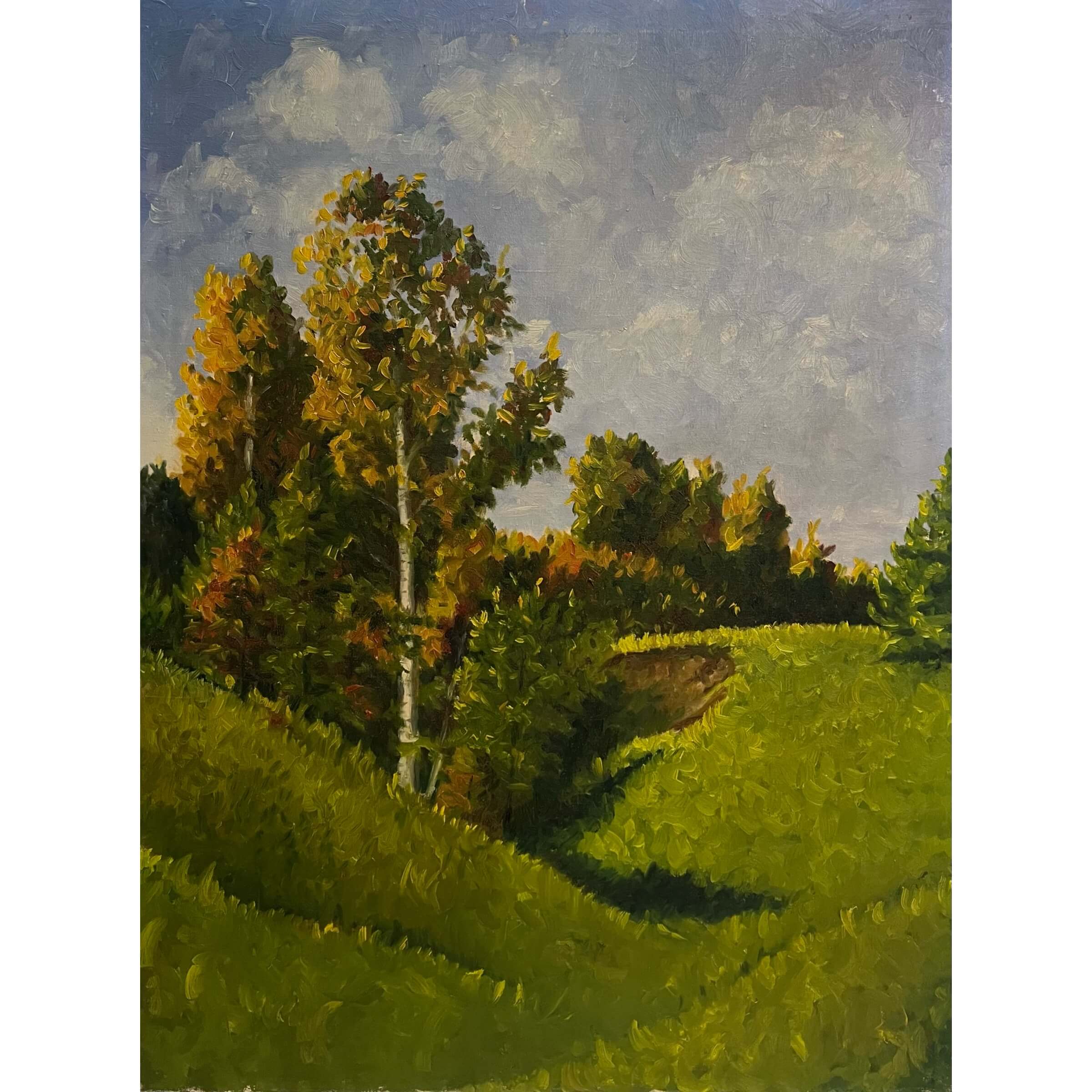 Nagy méretű, művészi ecsetkezeléssel és szép színvilággal megfestett természetkép, olaj-vászon alkotás ismeretlen művésztől, amely egy hozzáillő keretezést igényel.